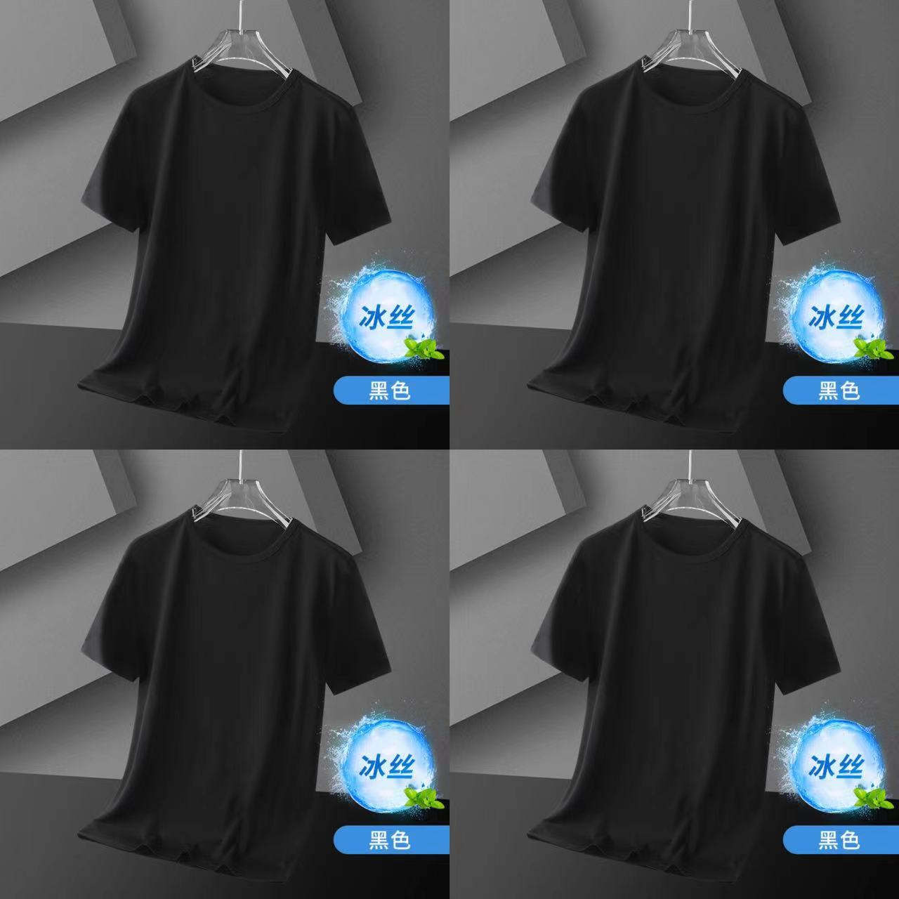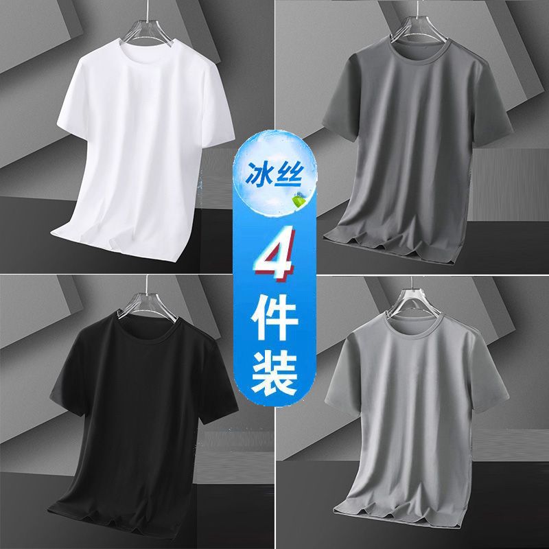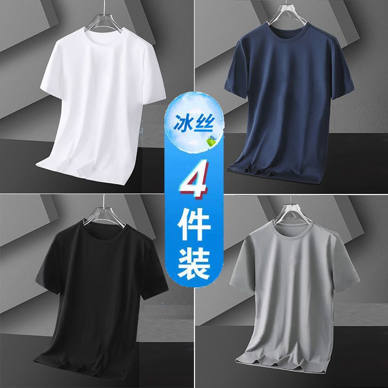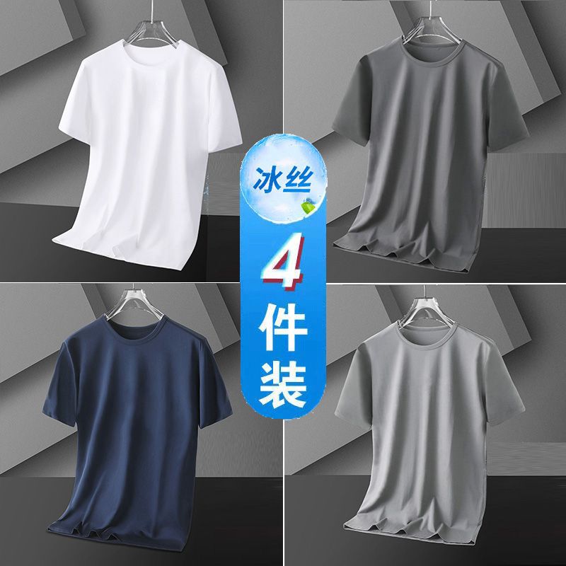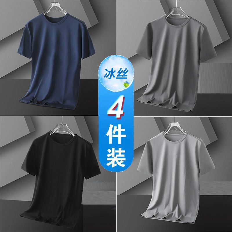 4 팩 아이스 실크 남자 반팔 티셔츠 여름 스포츠 통기성 플러스 사이즈 라운드 넥 티셔츠베이스 셔츠 남자 스판덱스 나일론 트렌디스토어 가기