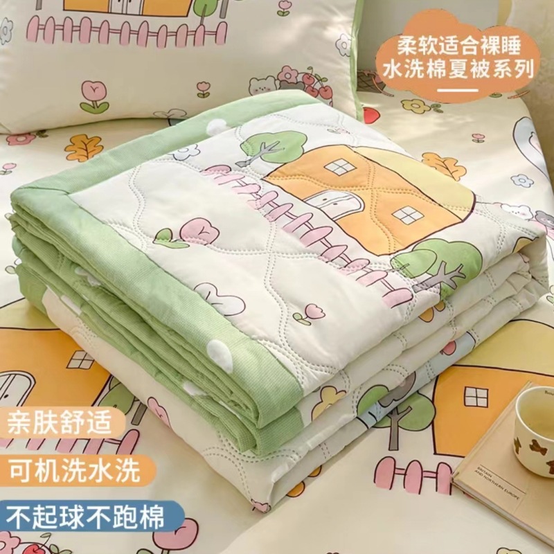 피부 친화적인 기모 워싱 코튼 여름 이불 여름 시원한 이불 간단한 학생 기숙사 싱글 에어컨 이불 얇은 이불 도매