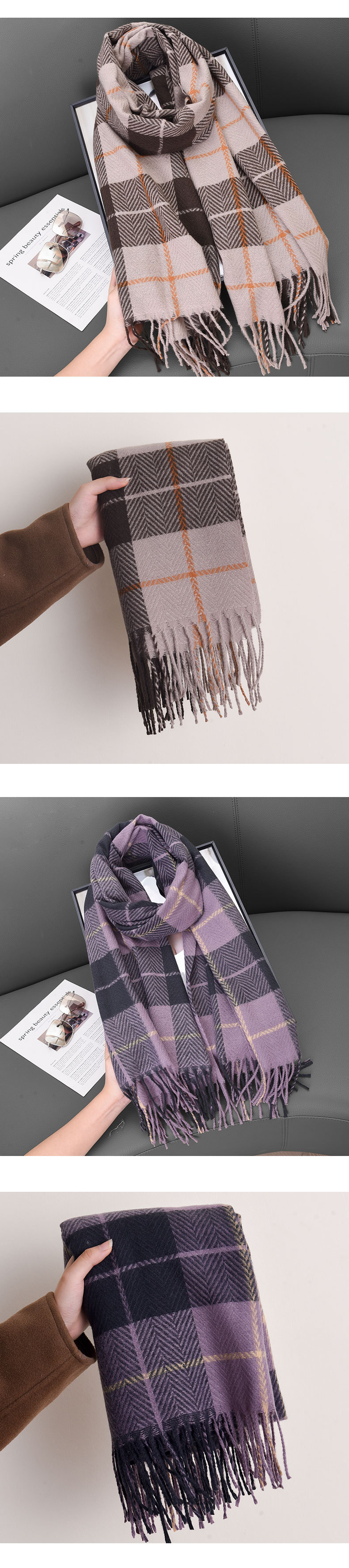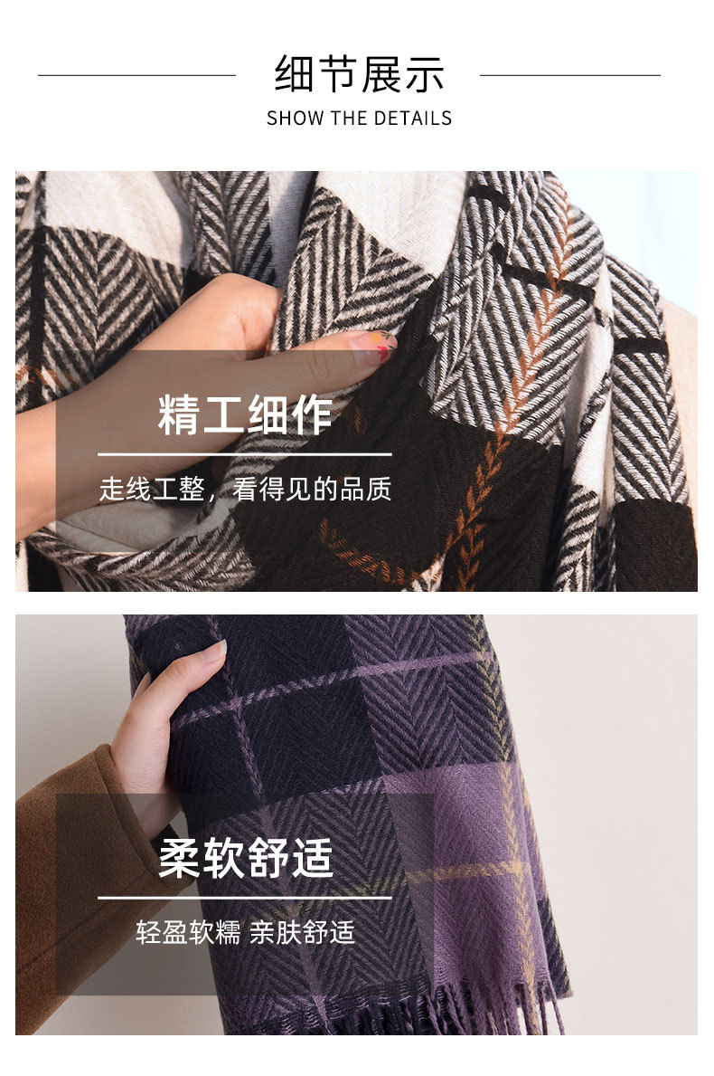 2024 새로운 하이 엔드 레트로 격자 무늬 스카프 여성 가을 및 겨울 국경 소프트 왁스 따뜻한 모방 캐시미어 스카프 목도리스토어 가기