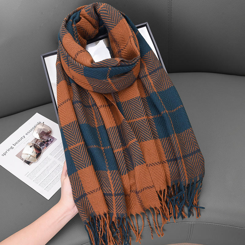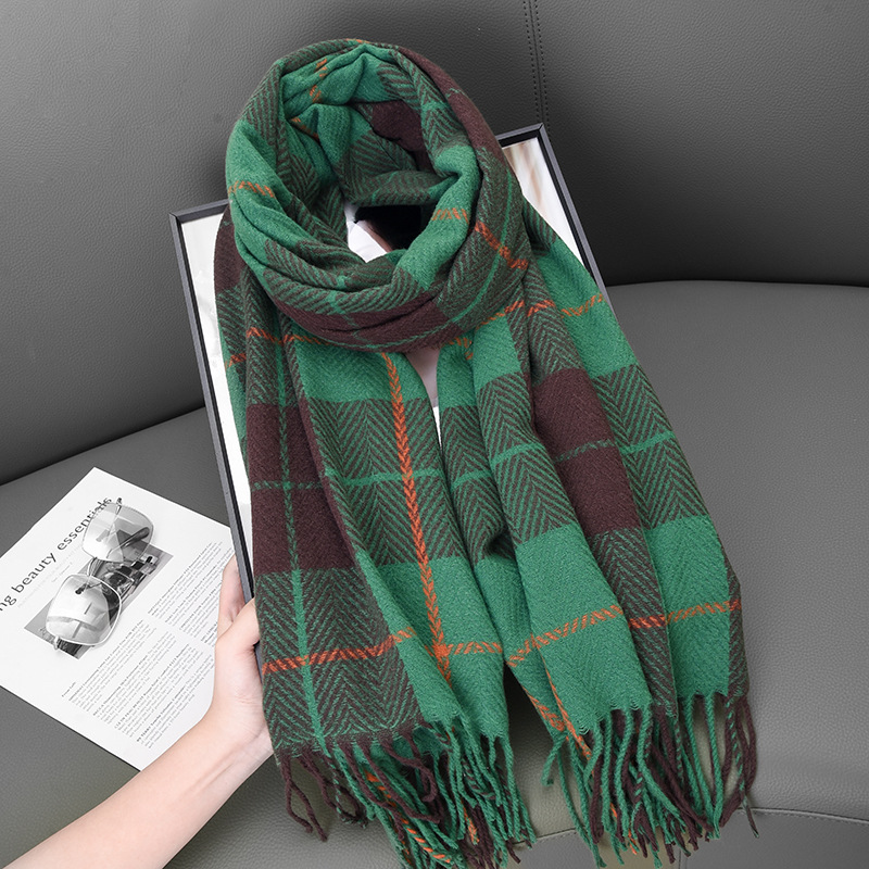 2024 새로운 하이 엔드 레트로 격자 무늬 스카프 여성 가을 및 겨울 국경 소프트 왁스 따뜻한 모방 캐시미어 스카프 목도리