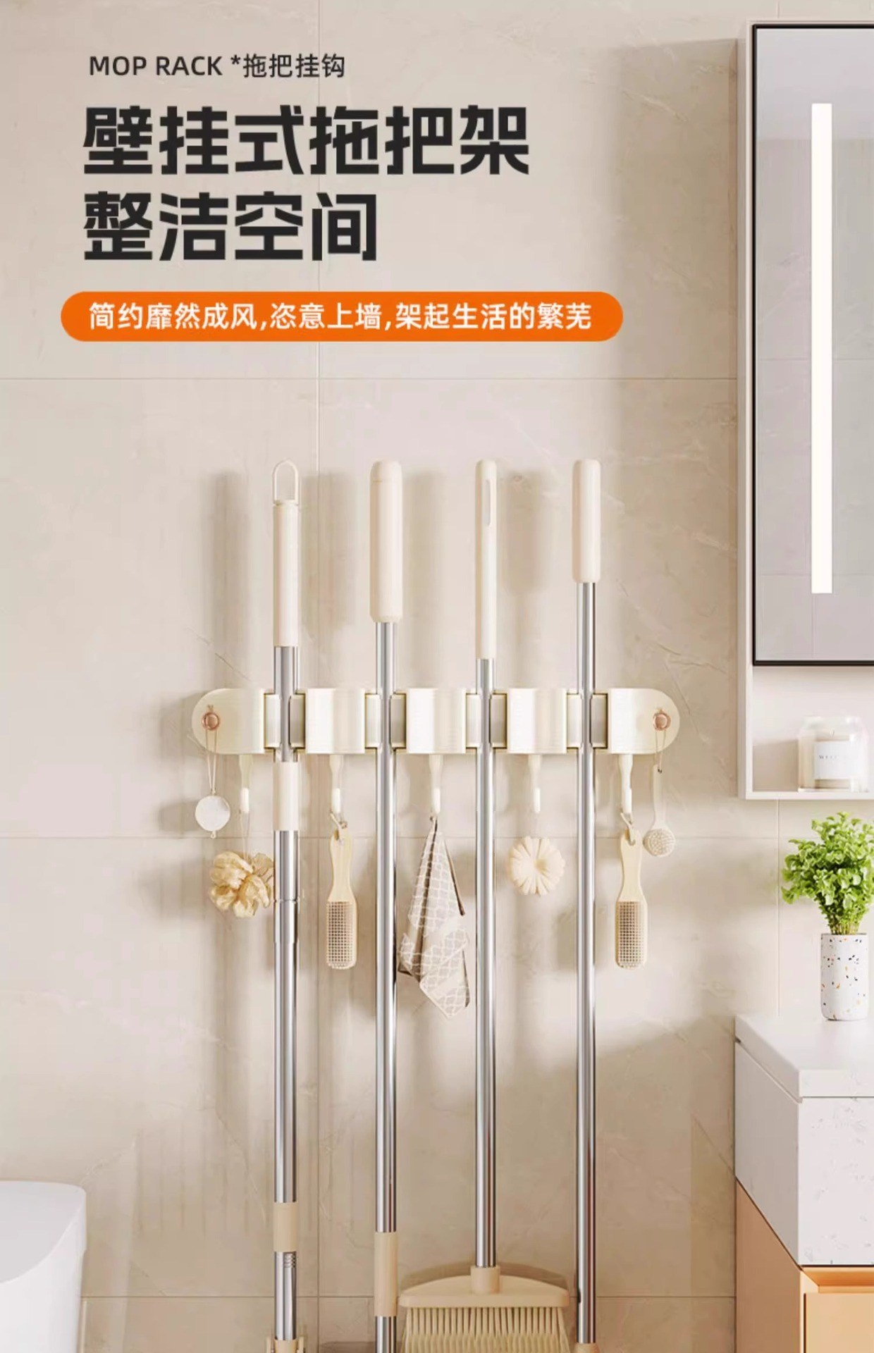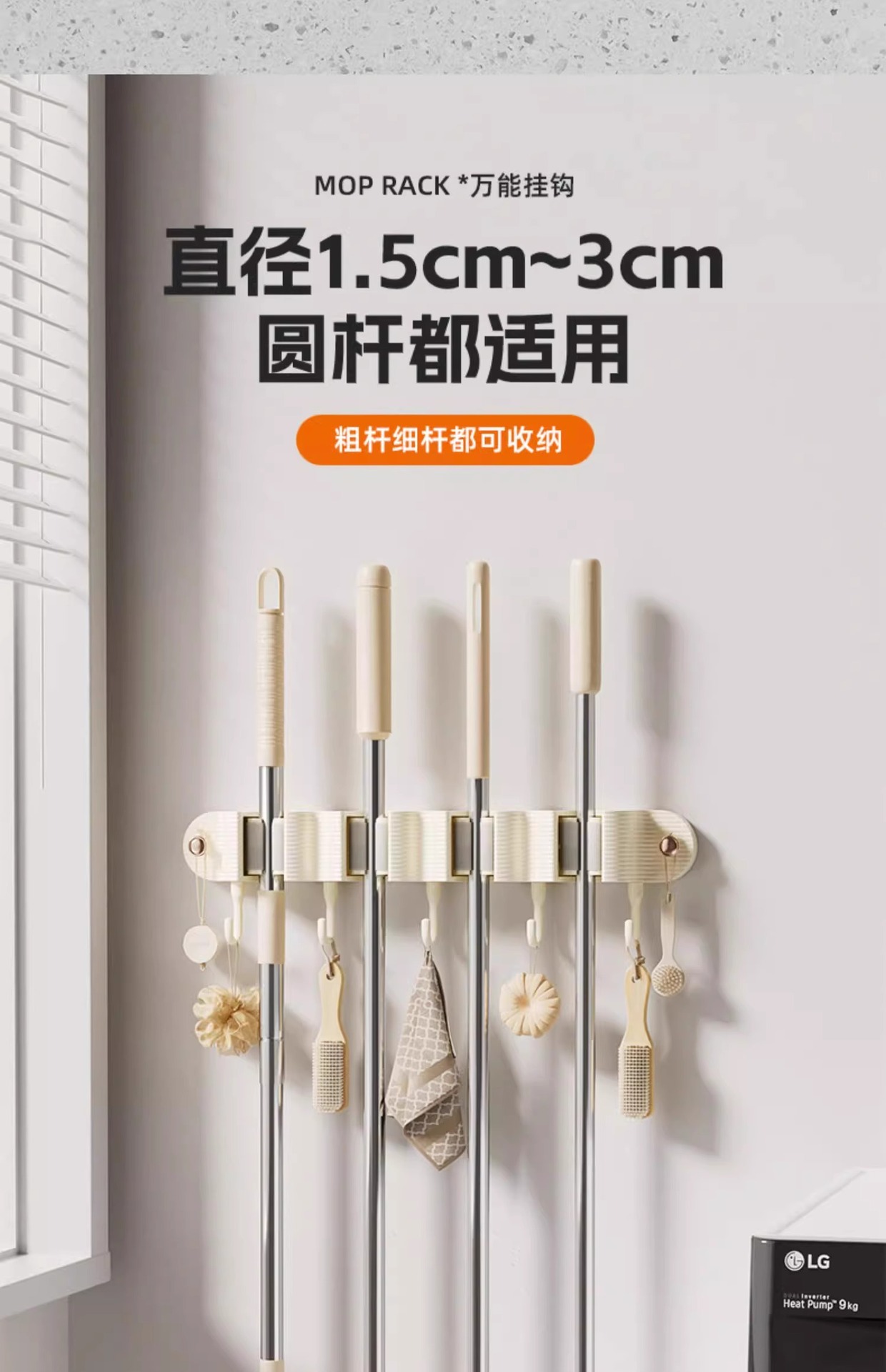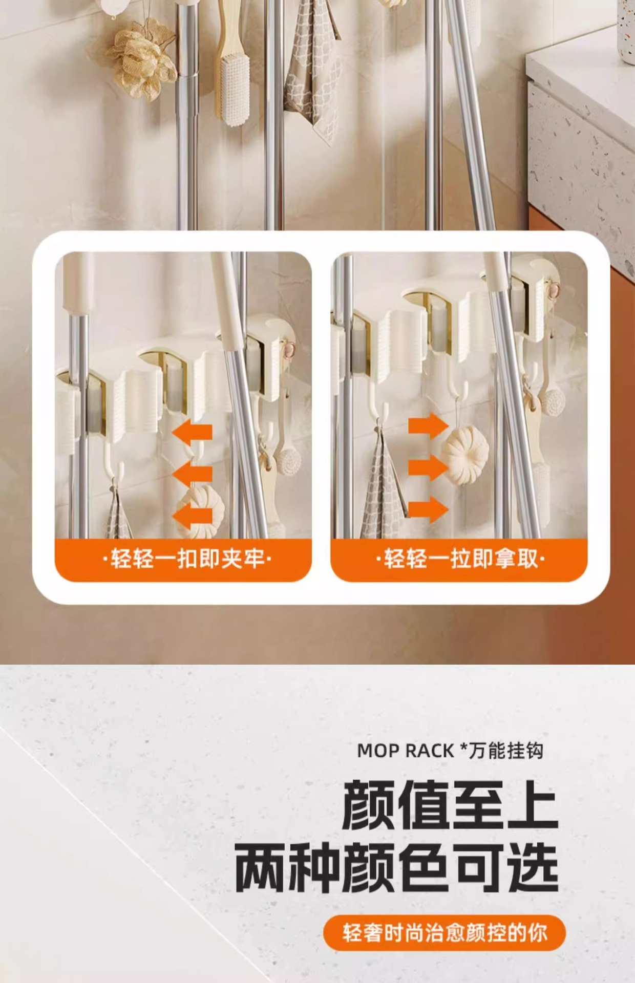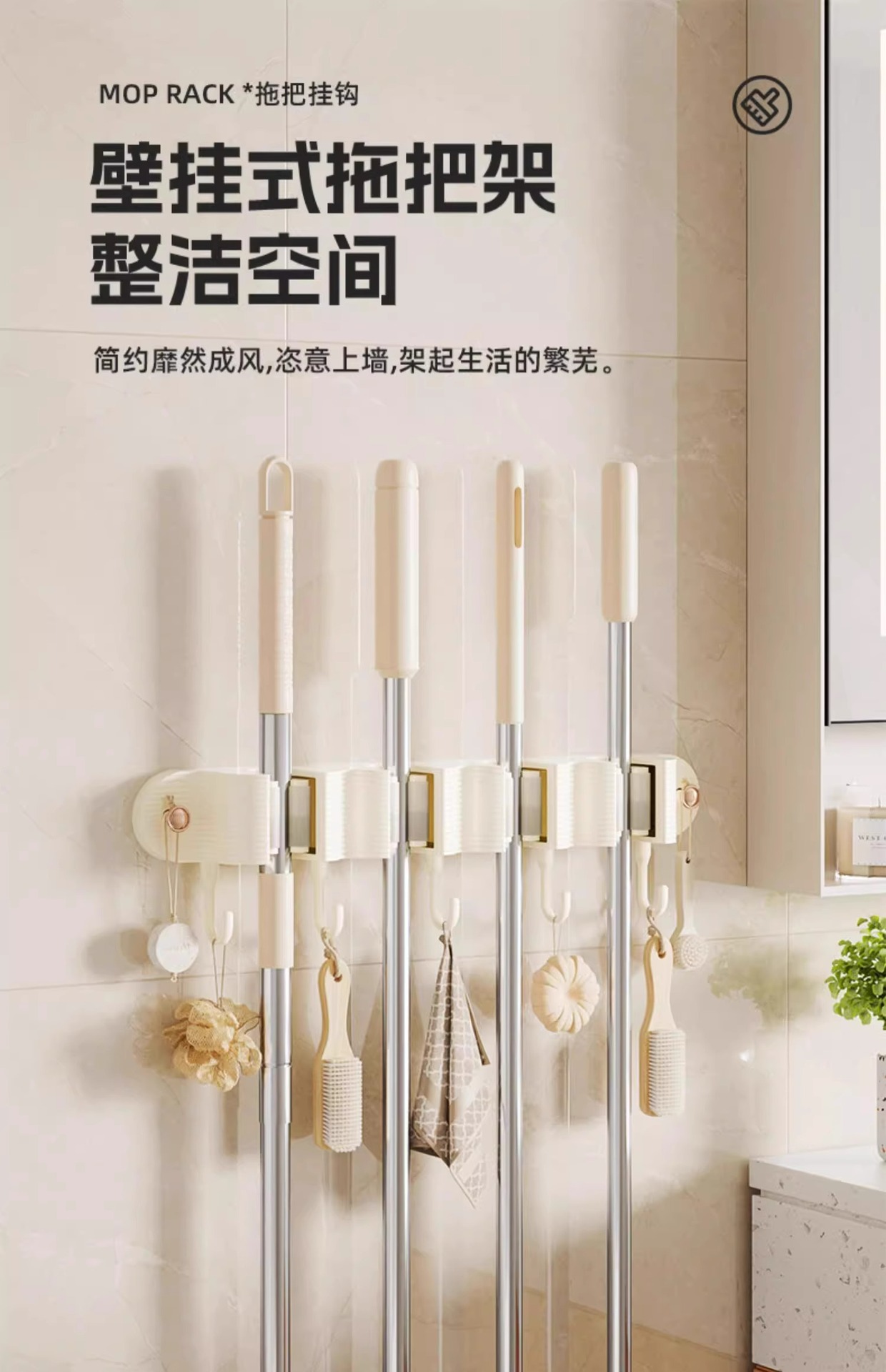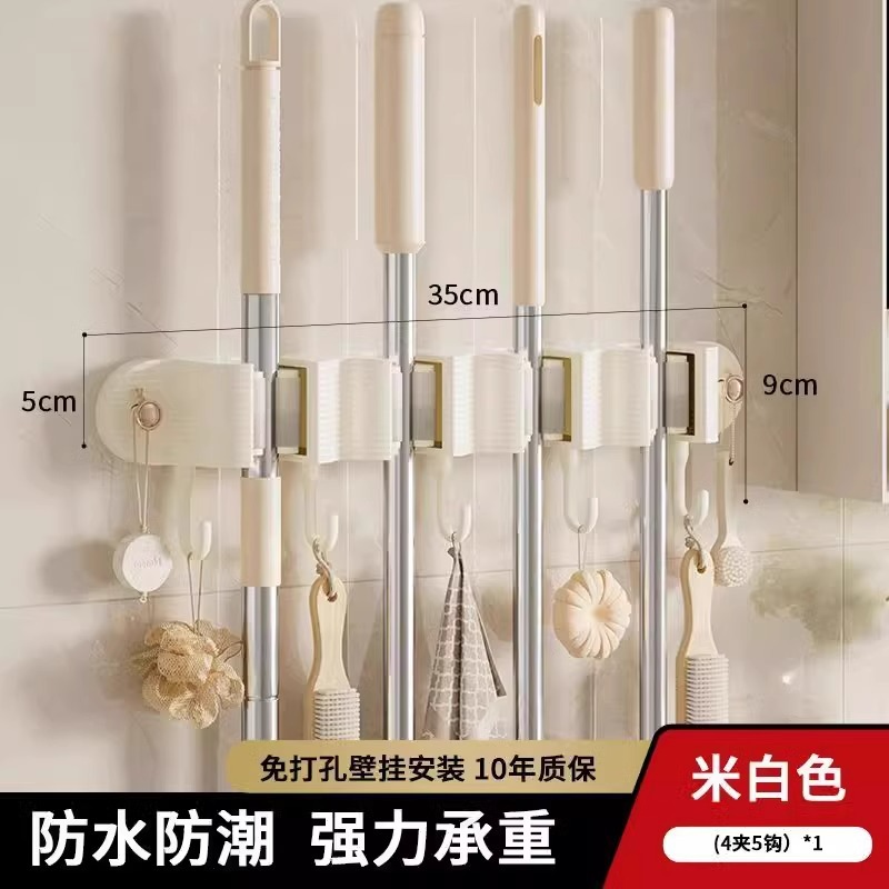 • 크림 화이트 패션 걸레 홀더 ★ [1팩] 클립 4개, 후크 5개