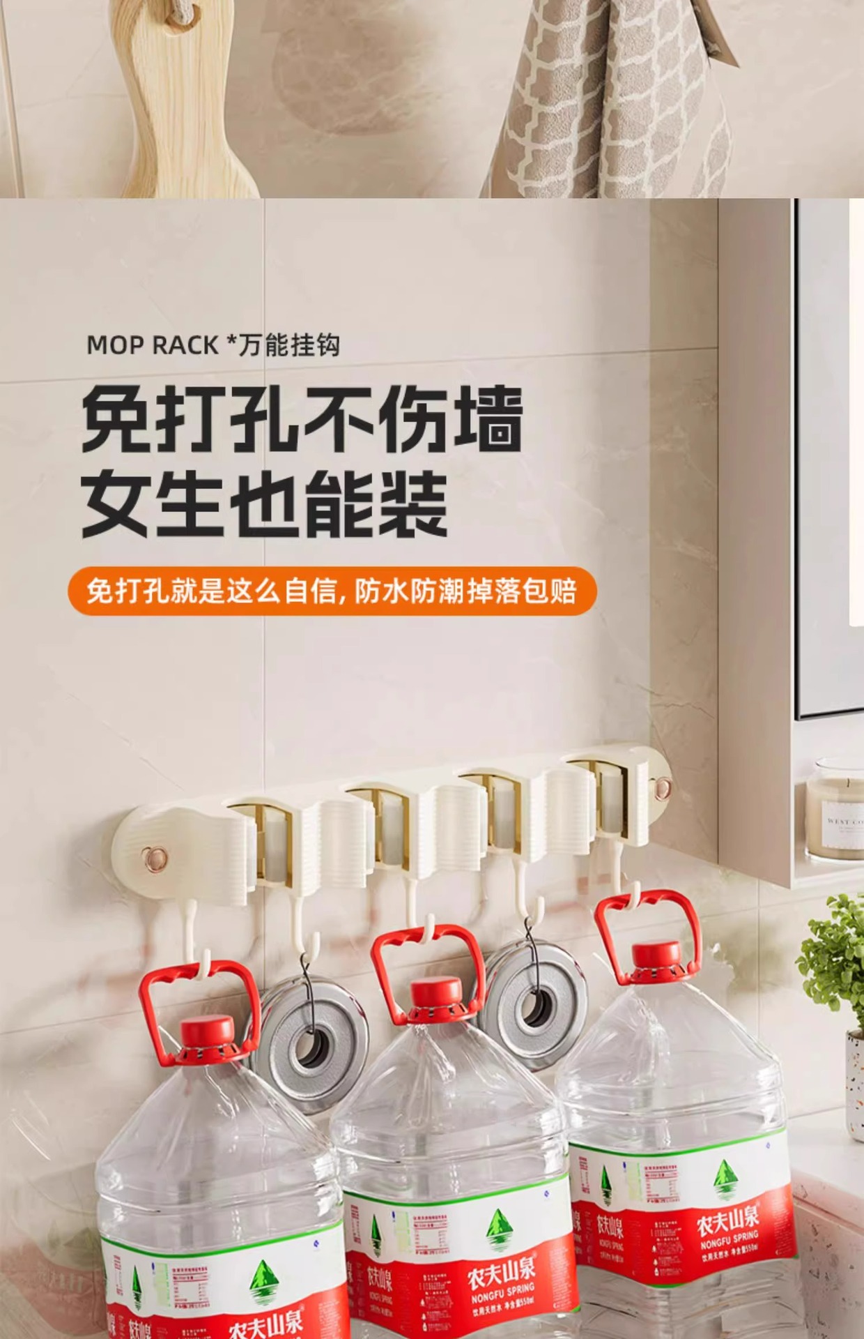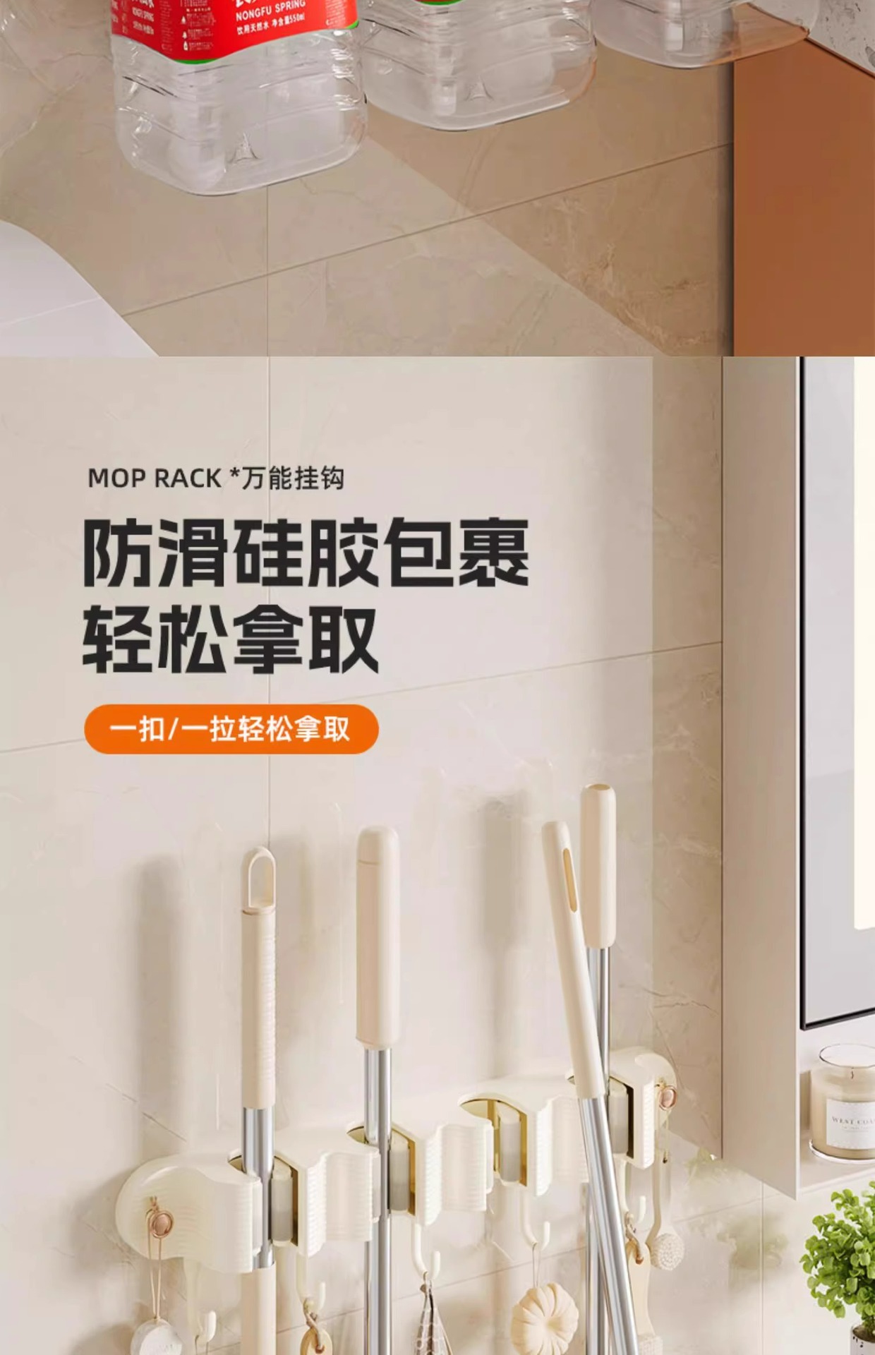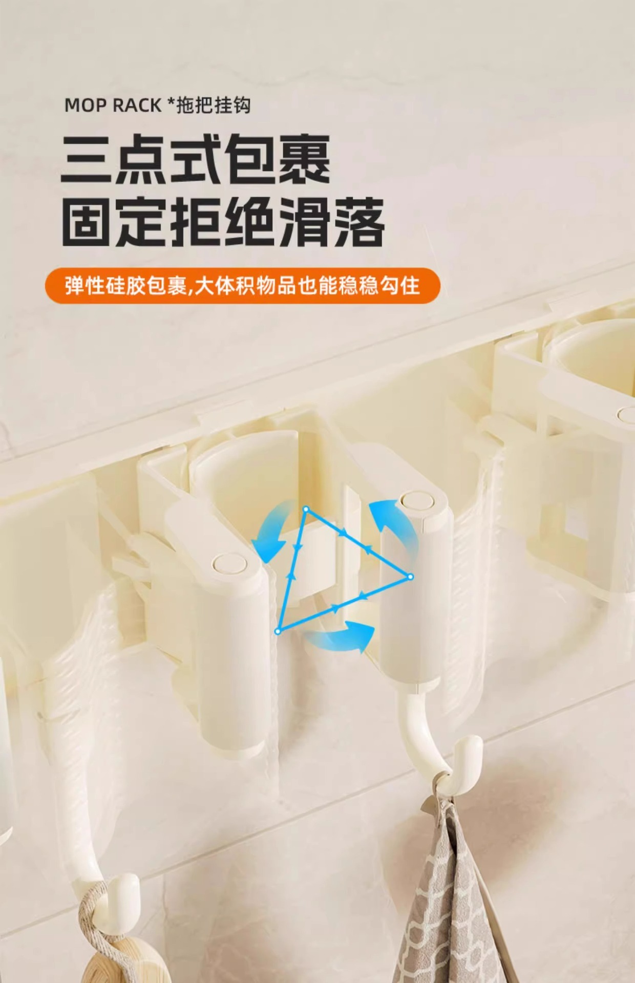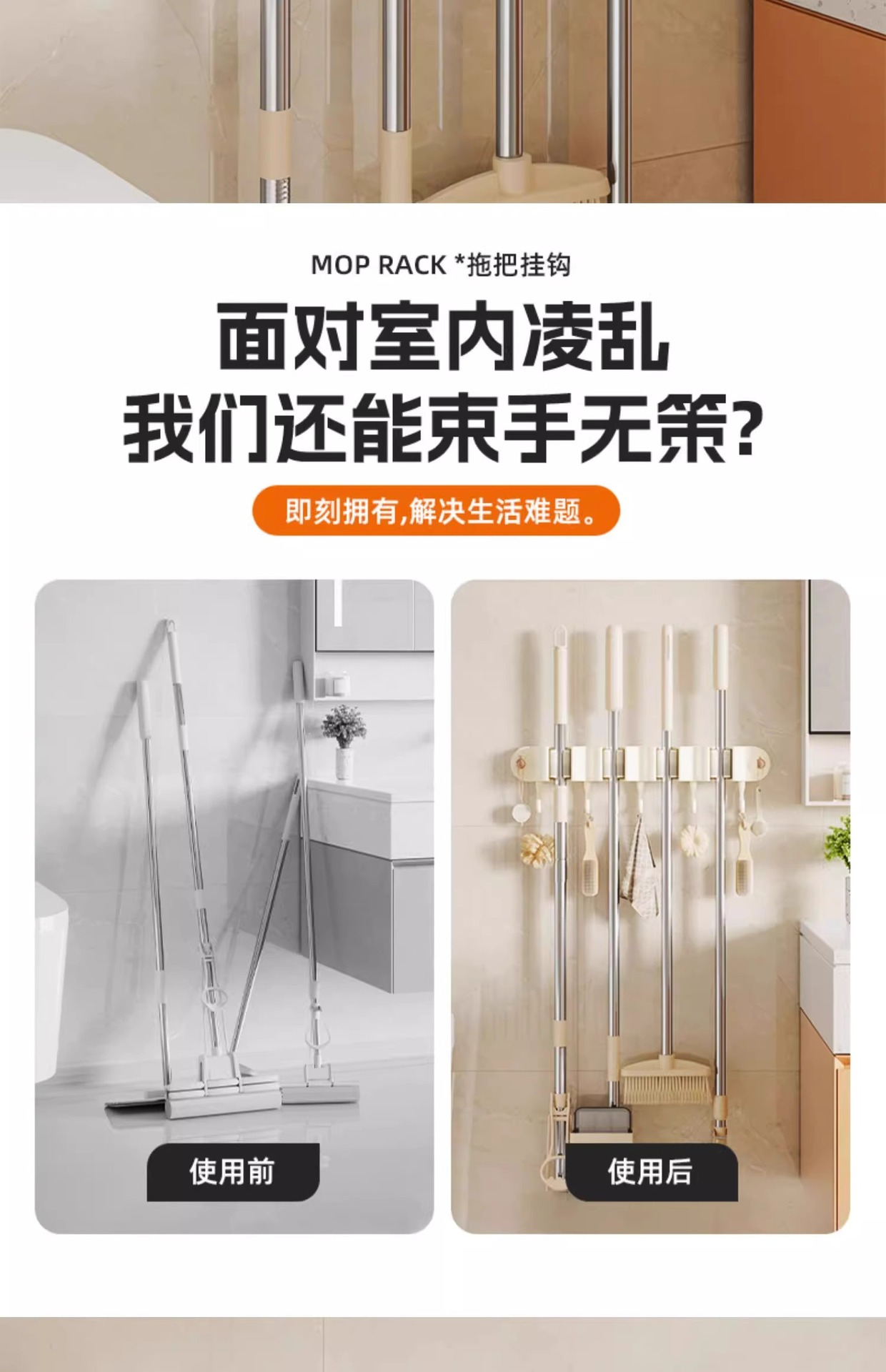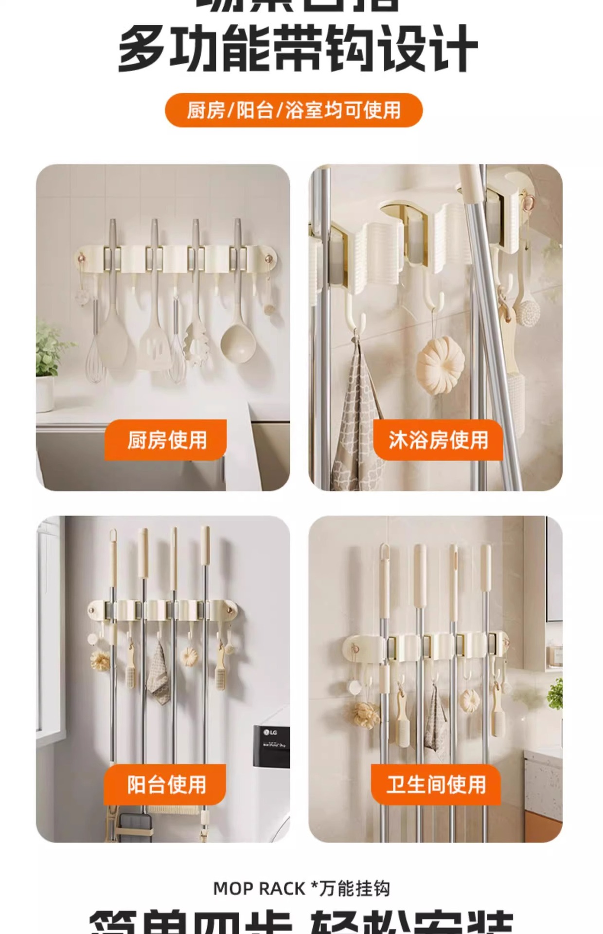 • 크림 화이트 패션 걸레 홀더 ★ [1팩] 클립 4개, 후크 5개