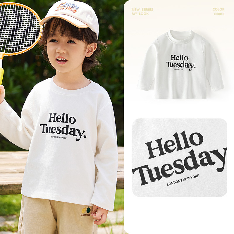 쿠와미 가을 겨울 어린이 면 양털베이스 셔츠 한국 편지 크루 넥 티셔츠 소년 소녀 가을 옷을 위한 긴 소매 탑