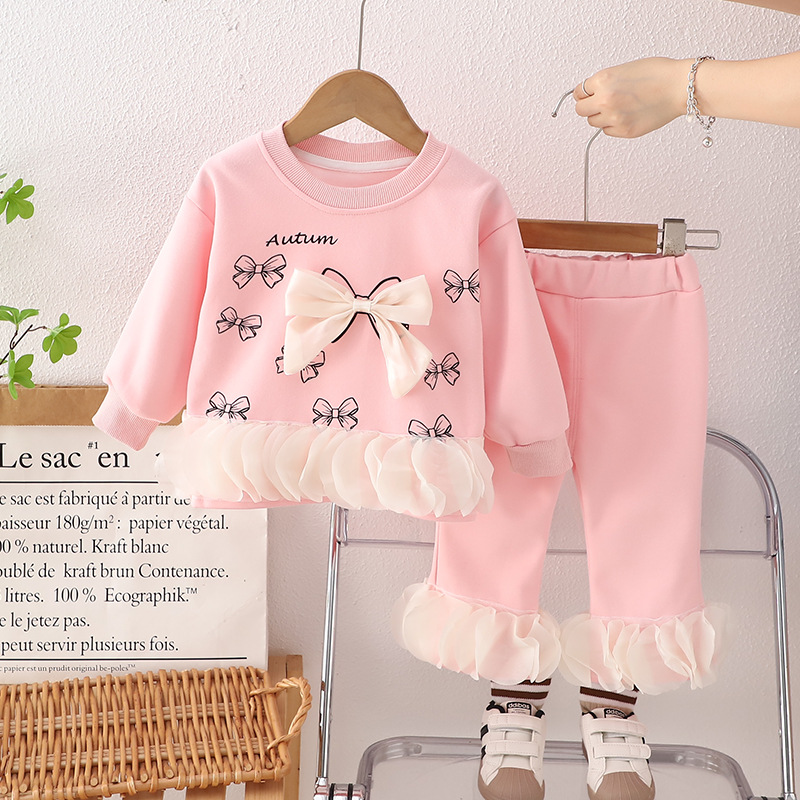 소녀 가을 세트 2024 새로운 아기 소녀 아기 봄과 가을 유행 긴 소매 스웨터 투피스 세트스토어 가기
