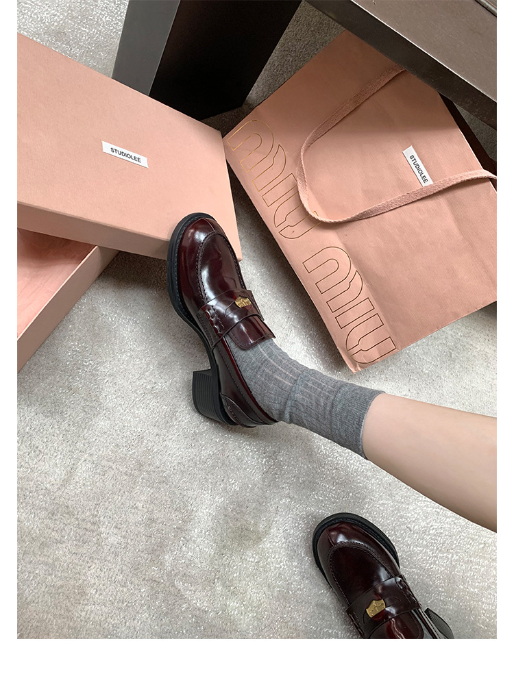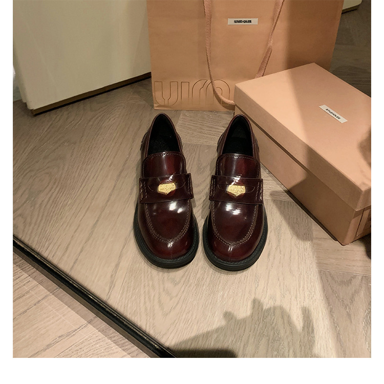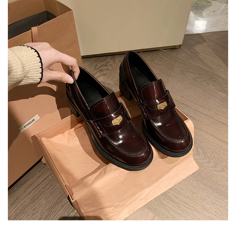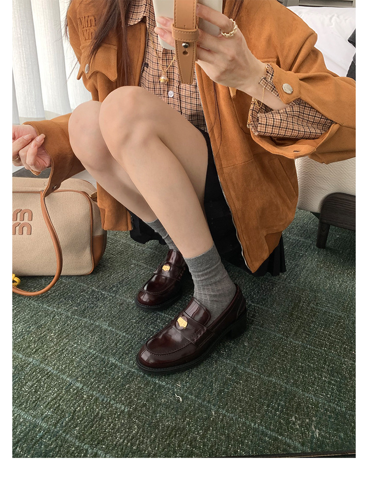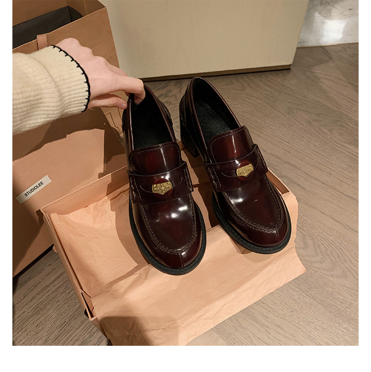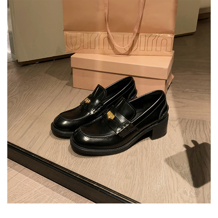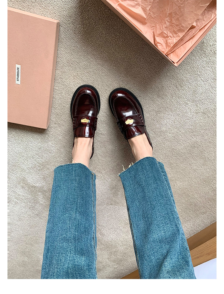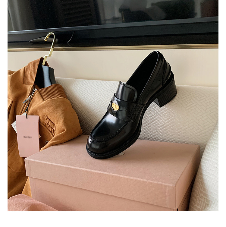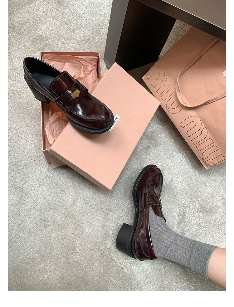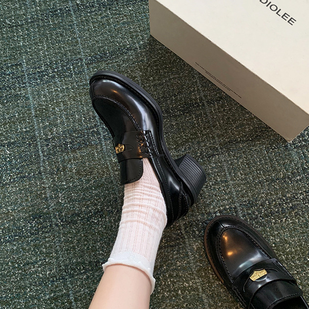 양가죽 버전 ~ 정품 가죽 영국 스타일의 작은 금화 한 페달 두꺼운 발 뒤꿈치 두꺼운 바닥 로퍼 여성 하이힐 신발 작은 가죽 신발스토어 가기