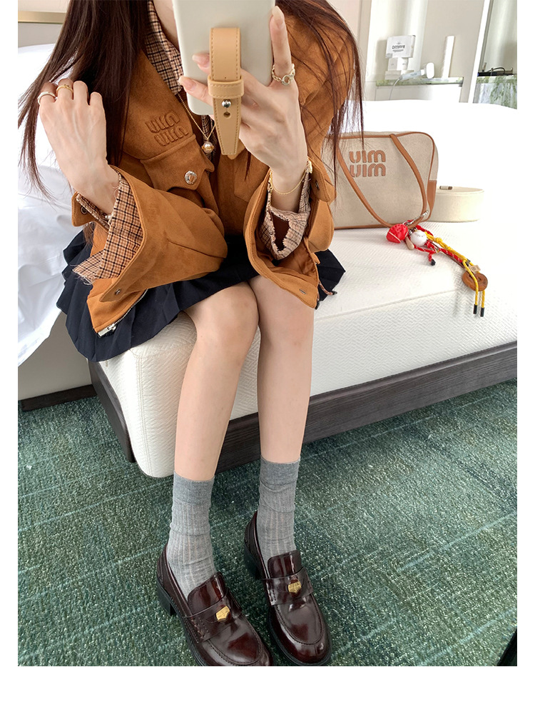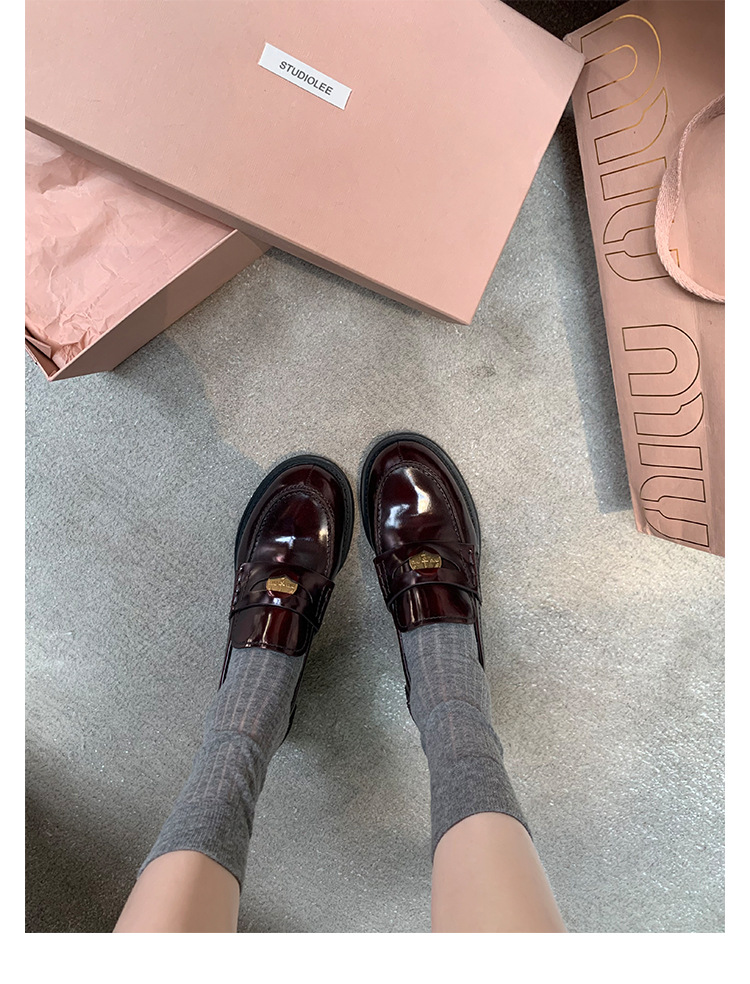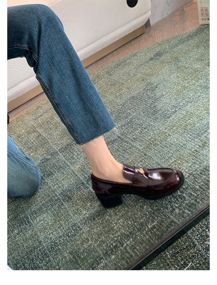 양가죽 버전 ~ 정품 가죽 영국 스타일의 작은 금화 한 페달 두꺼운 발 뒤꿈치 두꺼운 바닥 로퍼 여성 하이힐 신발 작은 가죽 신발