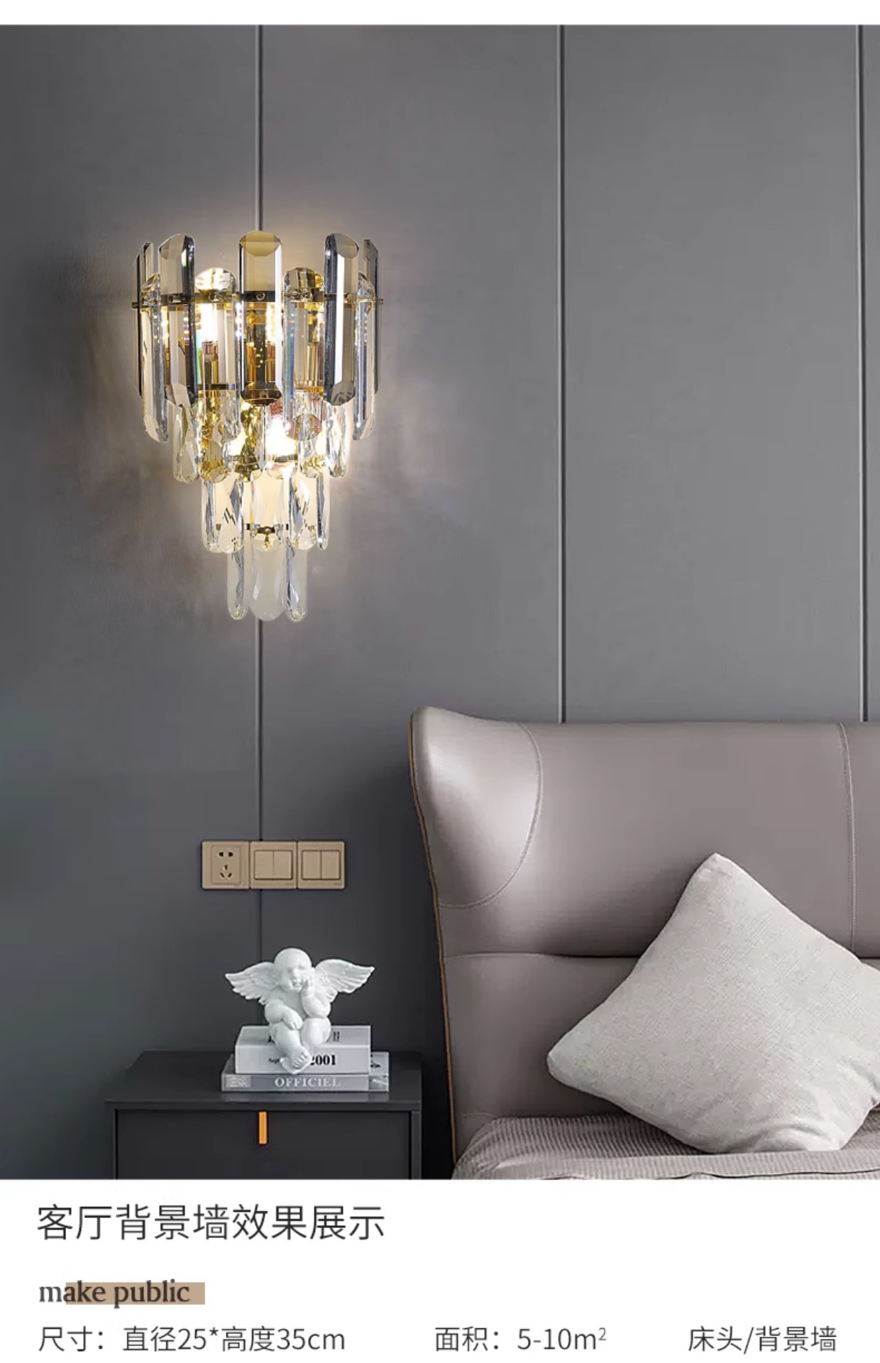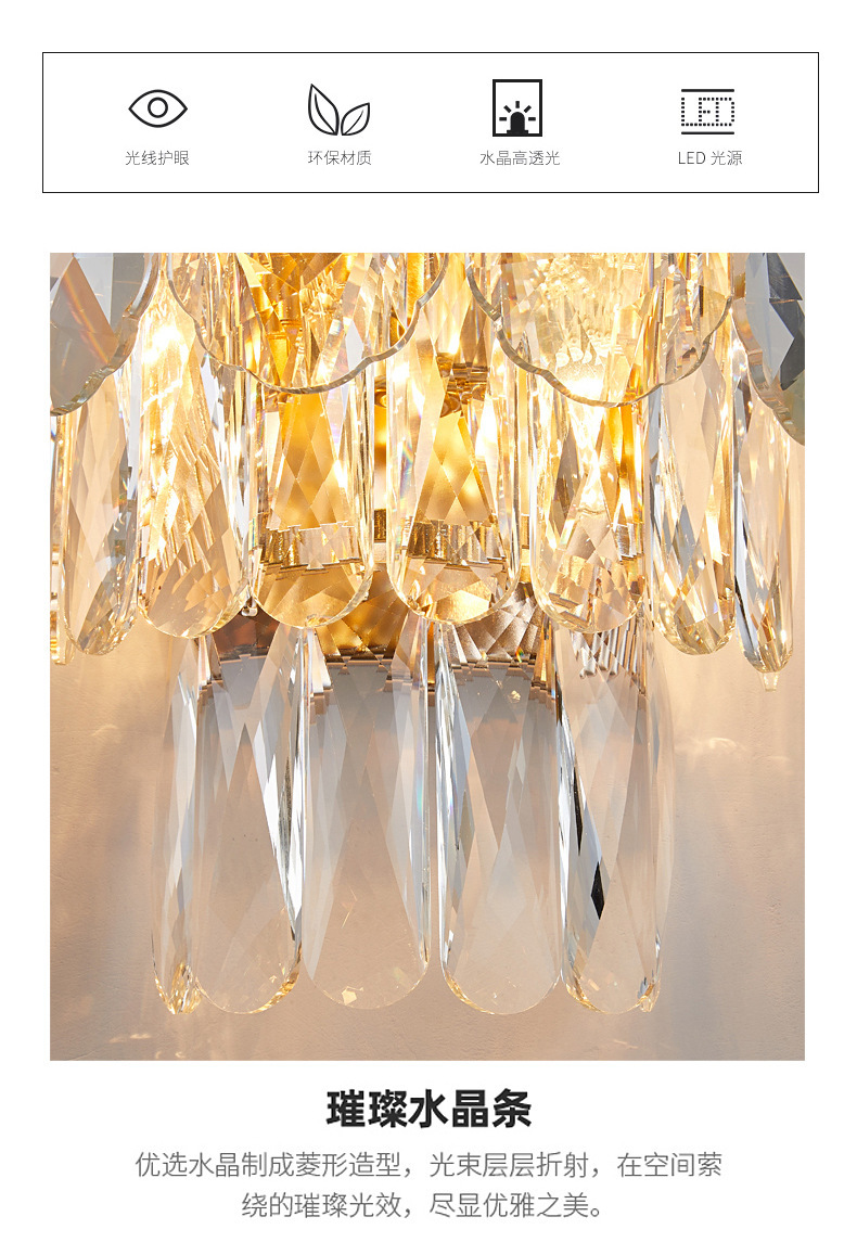 포스트 모던 크리스탈 벽 램프 라이트 럭셔리 호텔 객실 침실 침실 램프 창조적 인 거실 TV 배경 벽 복도 램프