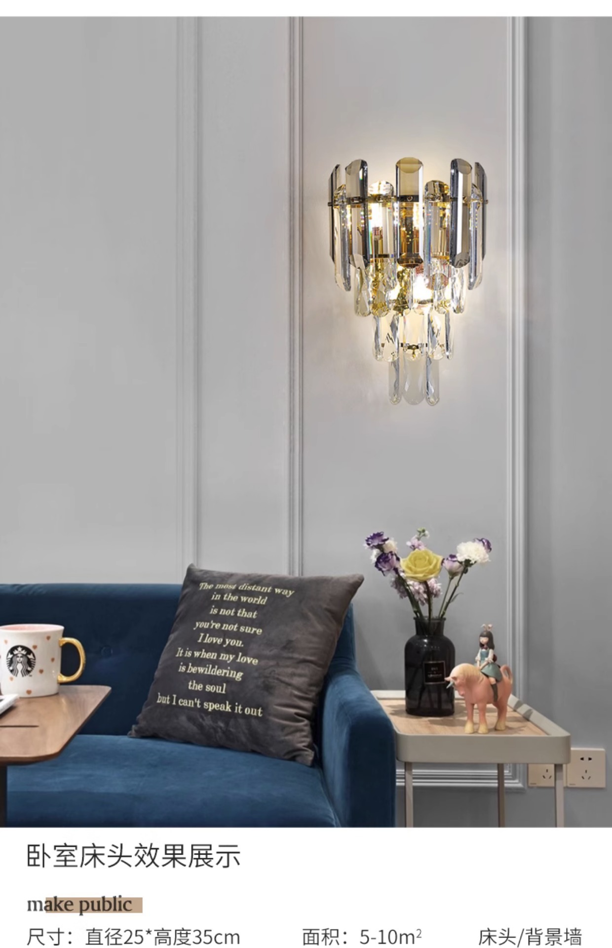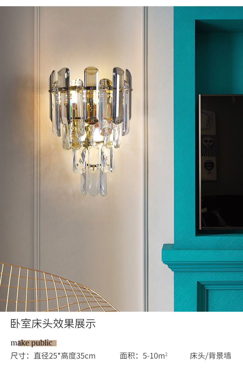 포스트 모던 크리스탈 벽 램프 라이트 럭셔리 호텔 객실 침실 침실 램프 창조적 인 거실 TV 배경 벽 복도 램프스토어 가기