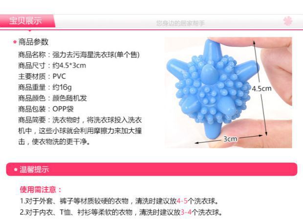 • 불가사리 세탁볼 1팩 - 색상 랜덤