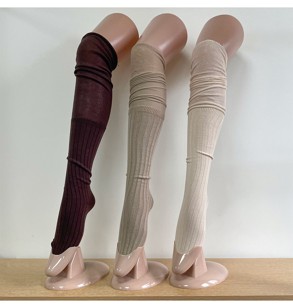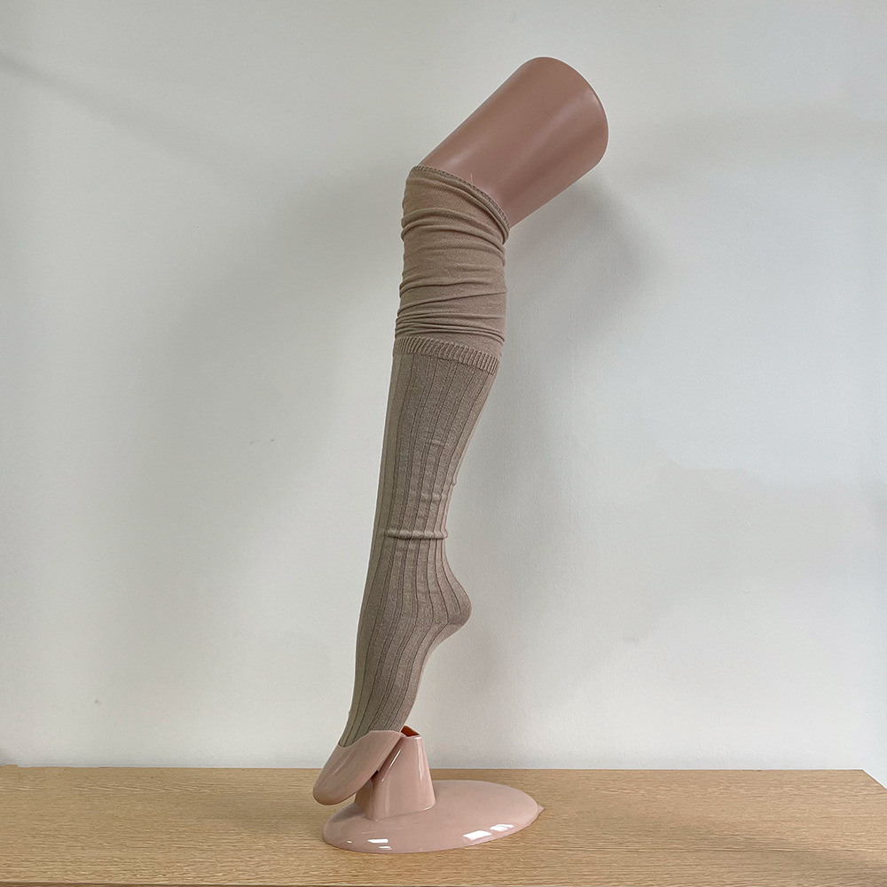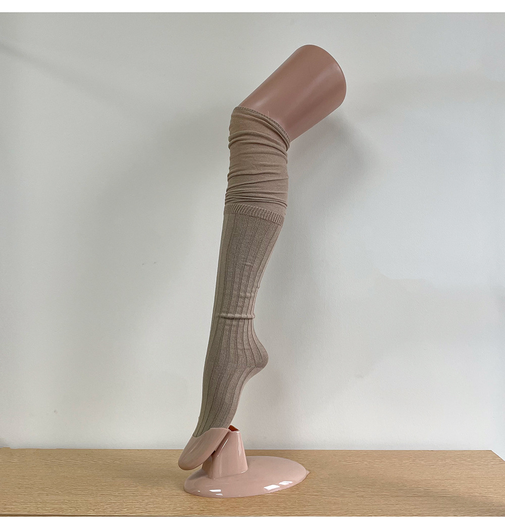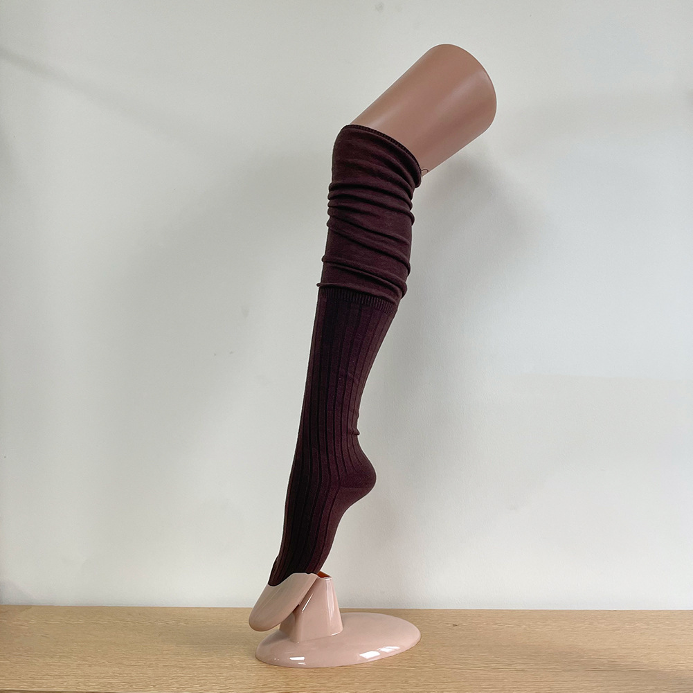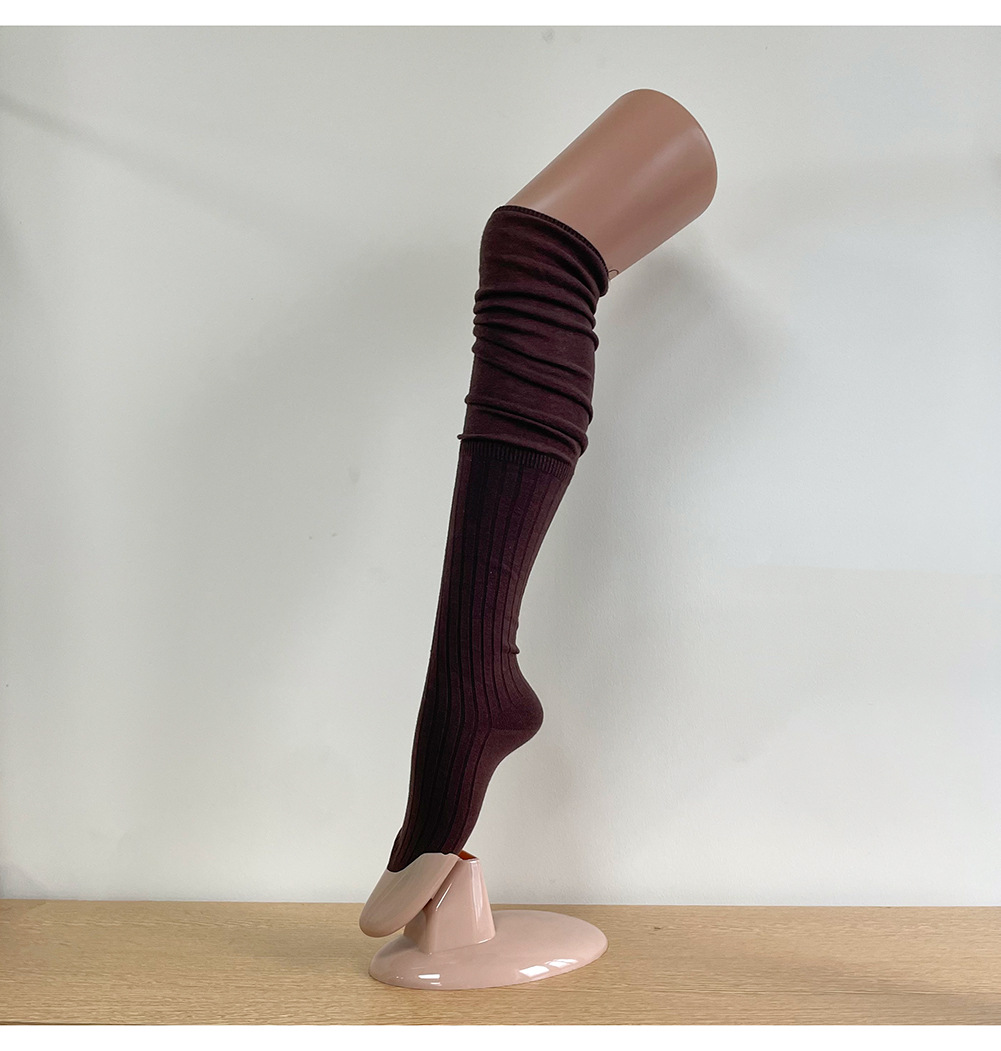 Ins 스타일 낮은 포화 마일라드 커피 수직 줄무늬 바느질 더미 높은 양말 무릎 위 긴 양말스토어 가기