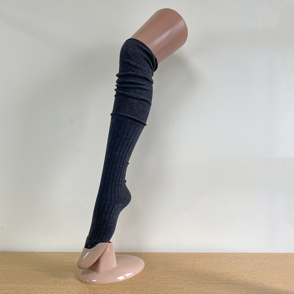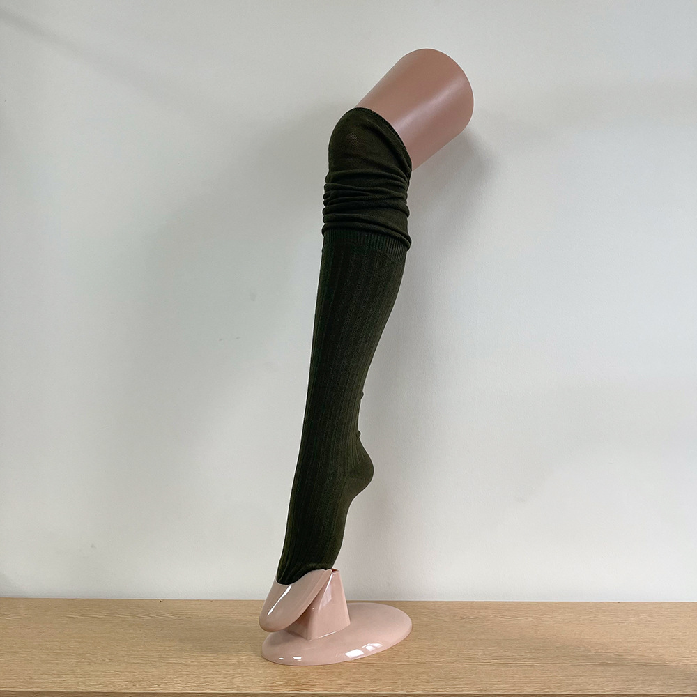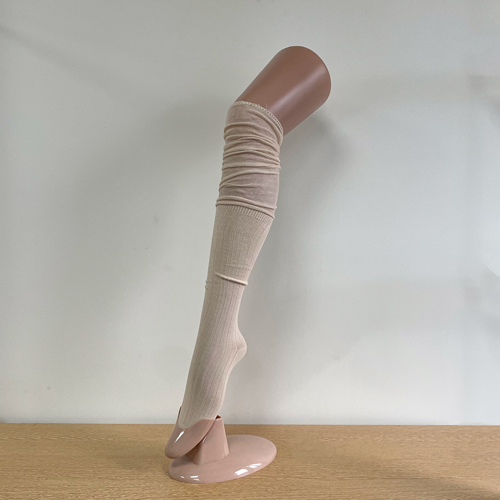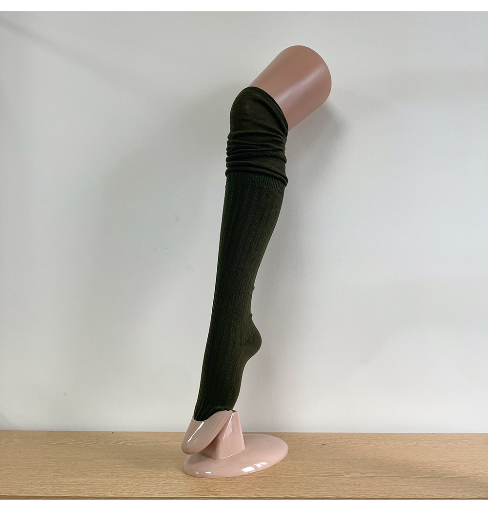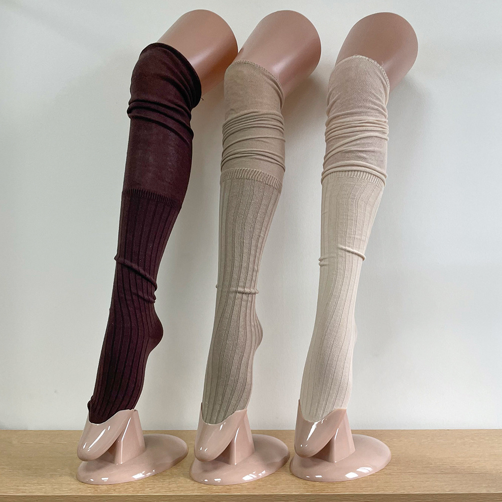 Ins 스타일 낮은 포화 마일라드 커피 수직 줄무늬 바느질 더미 높은 양말 무릎 위 긴 양말스토어 가기