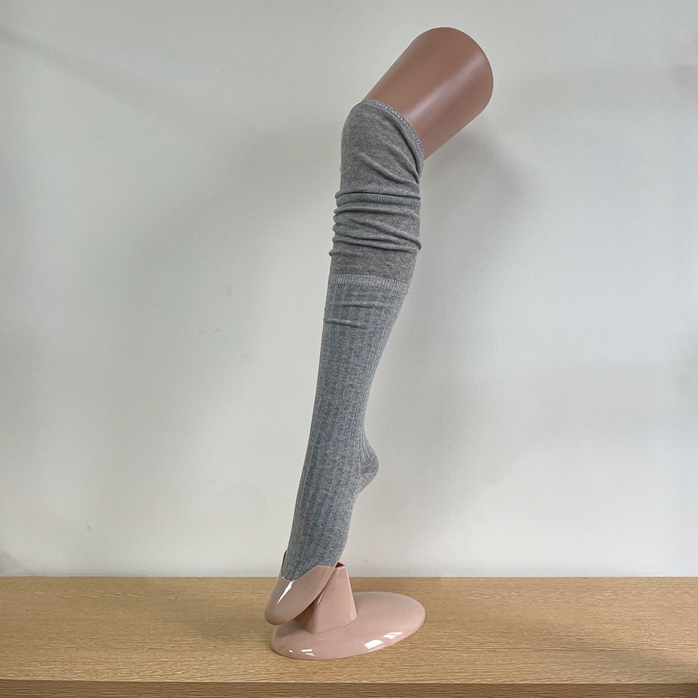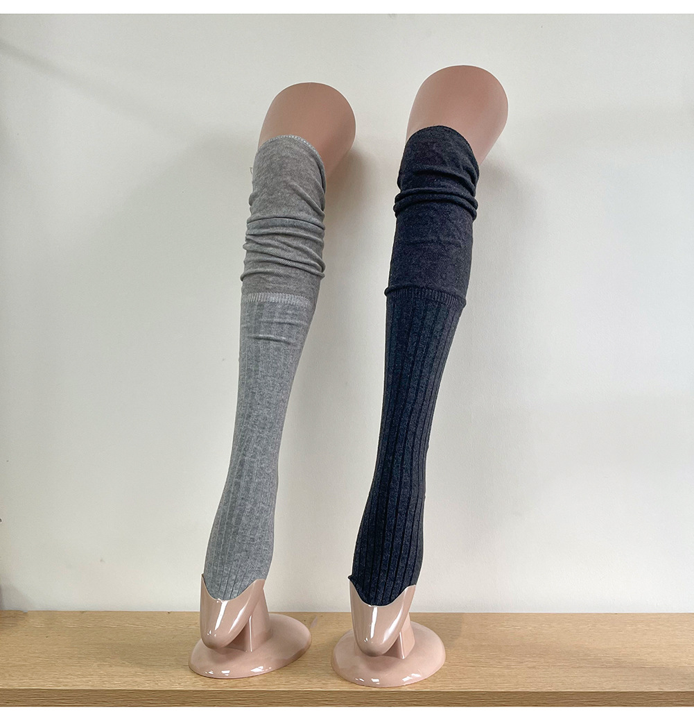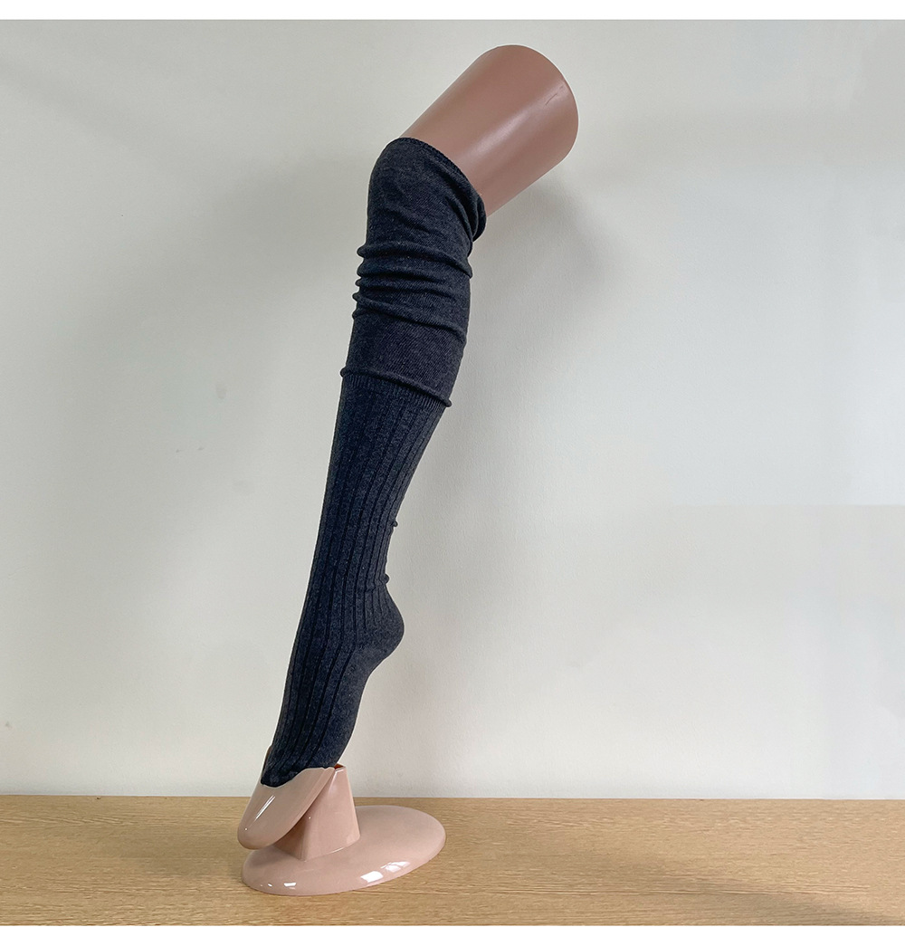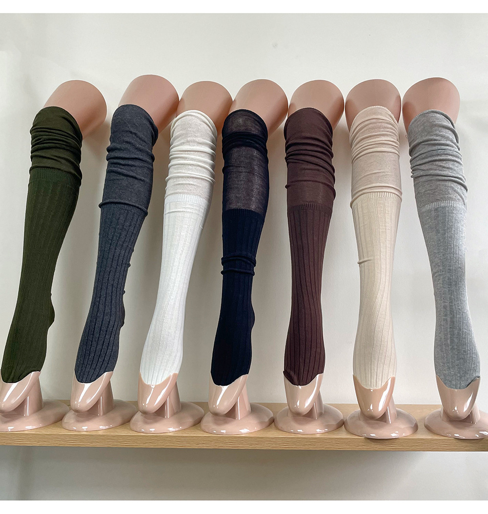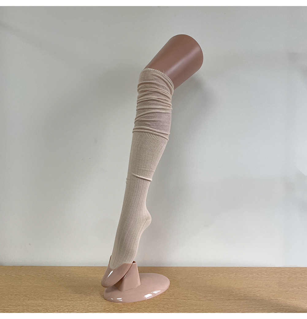 Ins 스타일 낮은 포화 마일라드 커피 수직 줄무늬 바느질 더미 높은 양말 무릎 위 긴 양말스토어 가기
