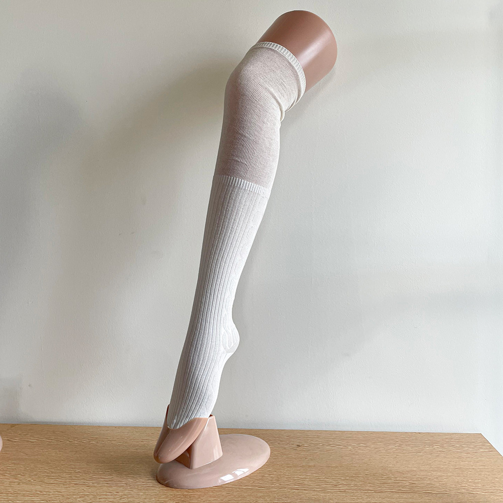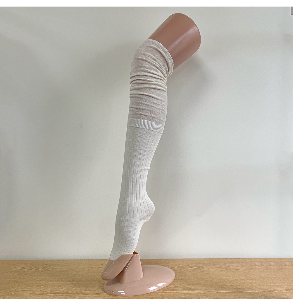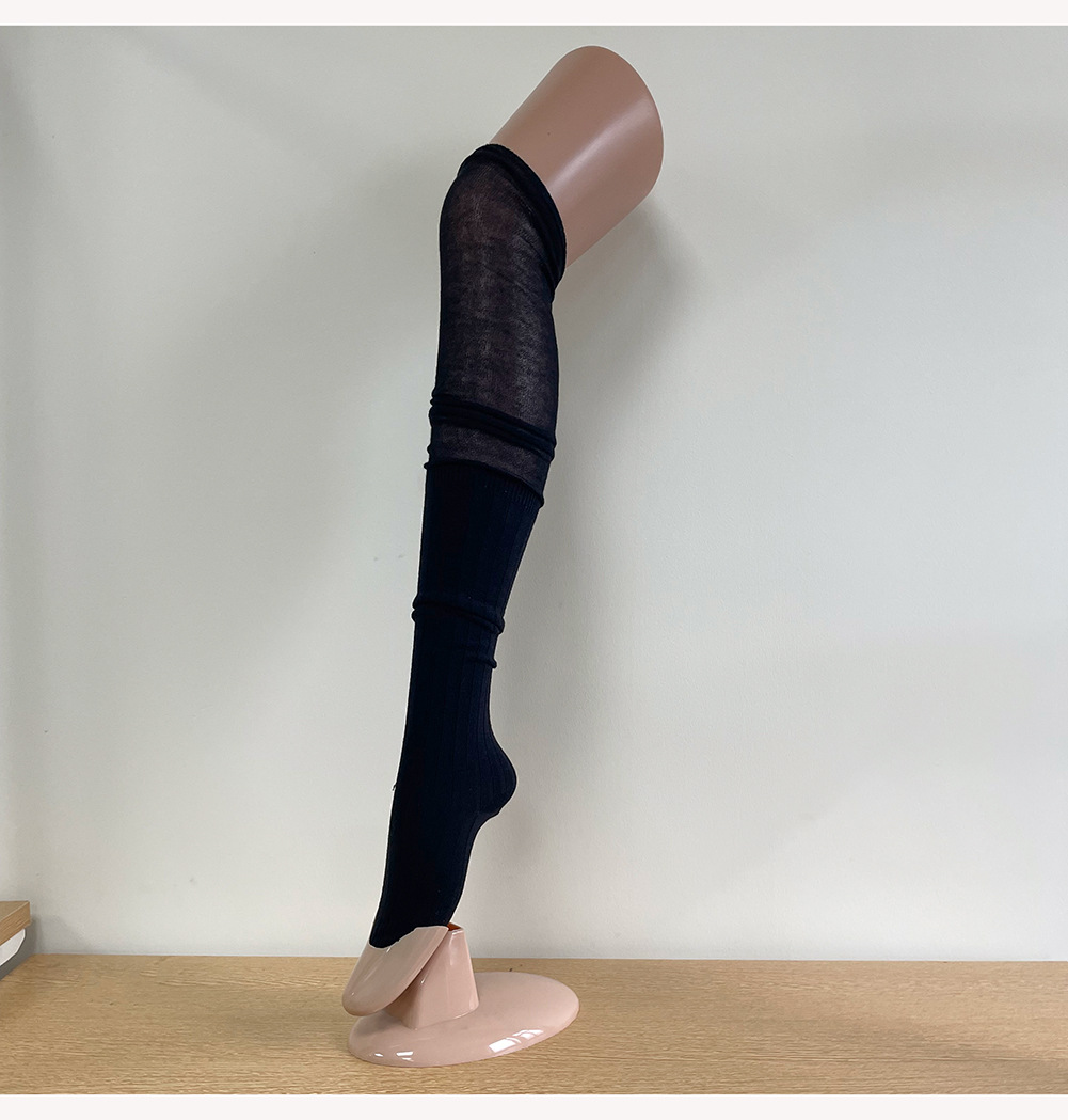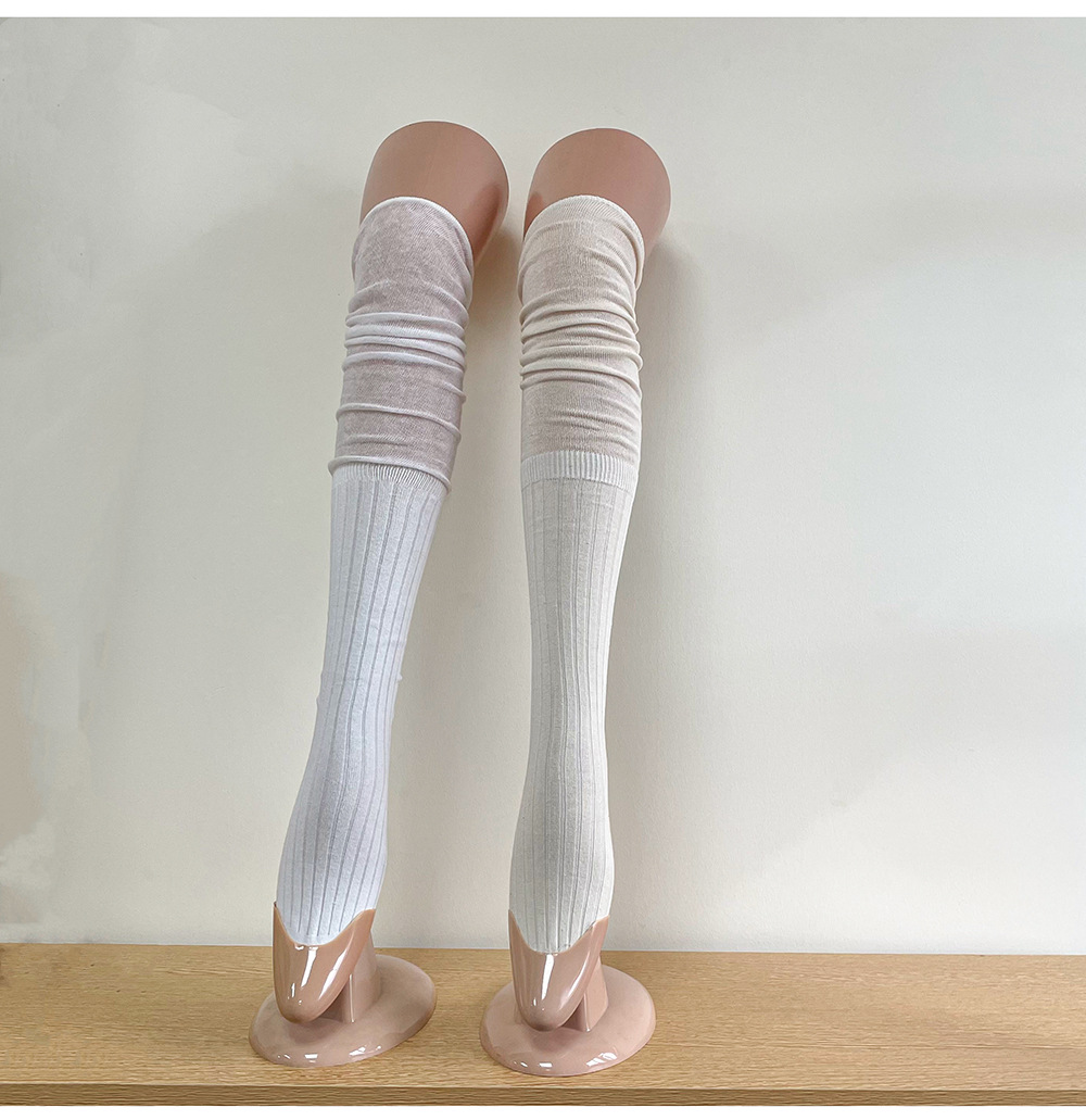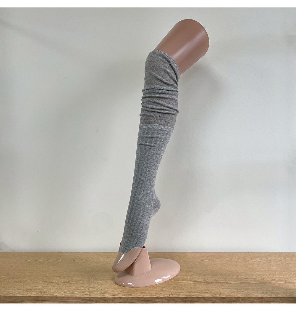 Ins 스타일 낮은 포화 마일라드 커피 수직 줄무늬 바느질 더미 높은 양말 무릎 위 긴 양말스토어 가기