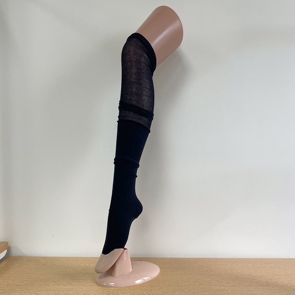 Ins 스타일 낮은 포화 마일라드 커피 수직 줄무늬 바느질 더미 높은 양말 무릎 위 긴 양말