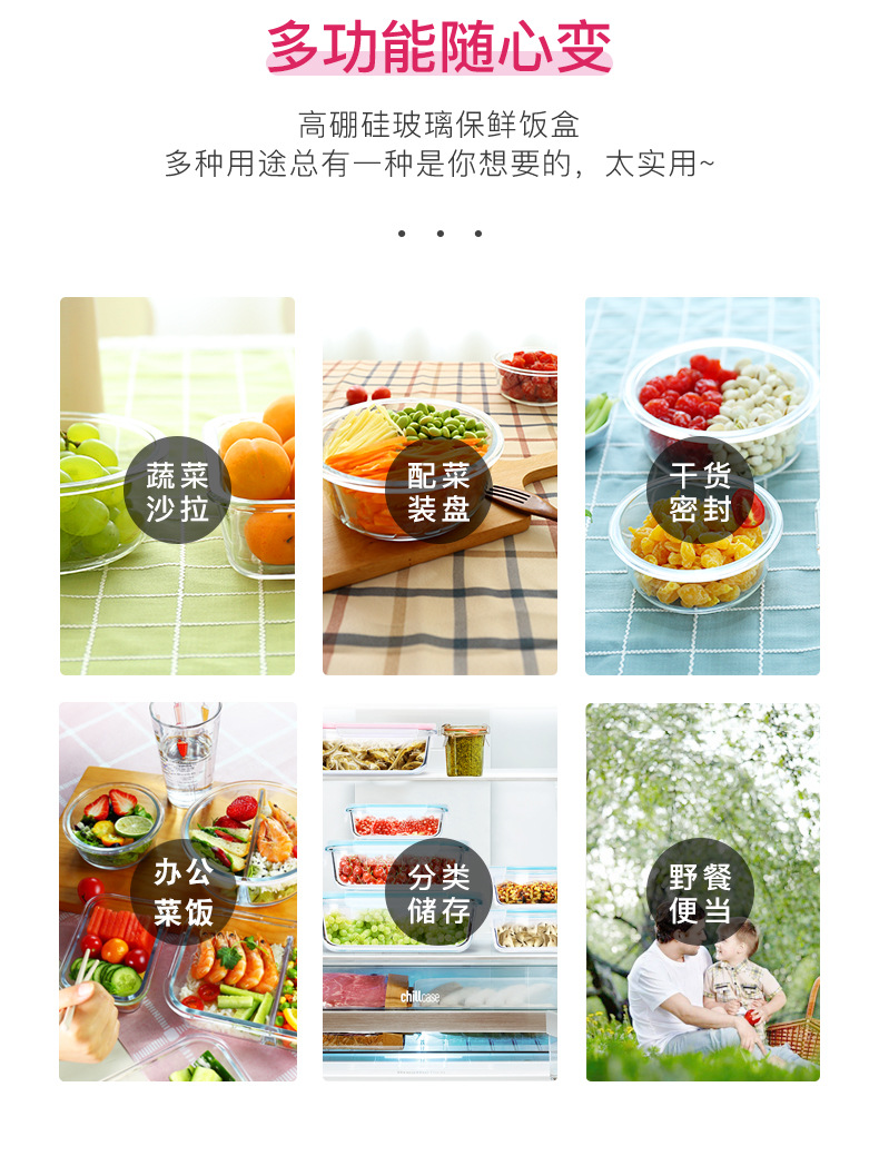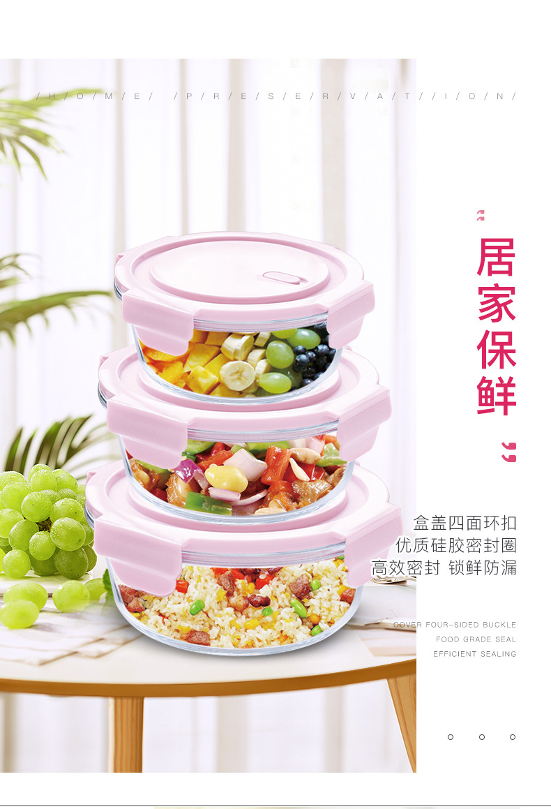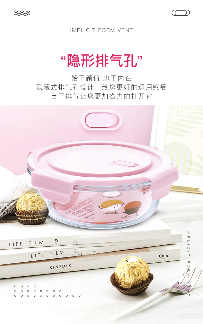 유리 도시락 전자 레인지 난방 특수 사무실 노동자 쌀 밀봉 도시락 그릇 상자 뚜껑 둥근 수프 그릇 도매