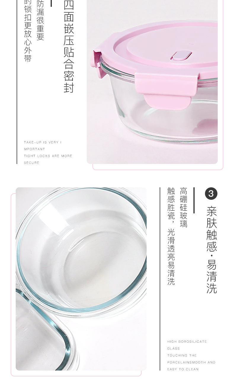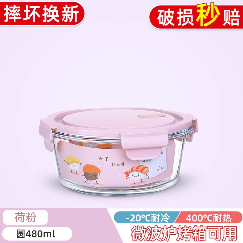 유리 도시락 전자 레인지 난방 특수 사무실 노동자 쌀 밀봉 도시락 그릇 상자 뚜껑 둥근 수프 그릇 도매스토어 가기