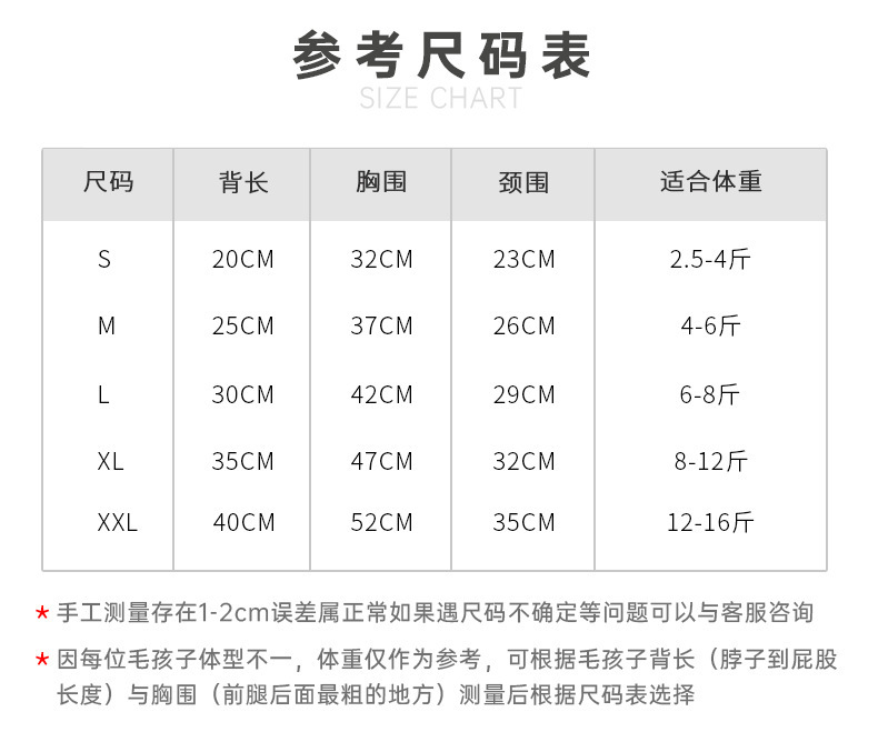 • S (귀여운 애완동물 1.0-2kg 개에게 권장)