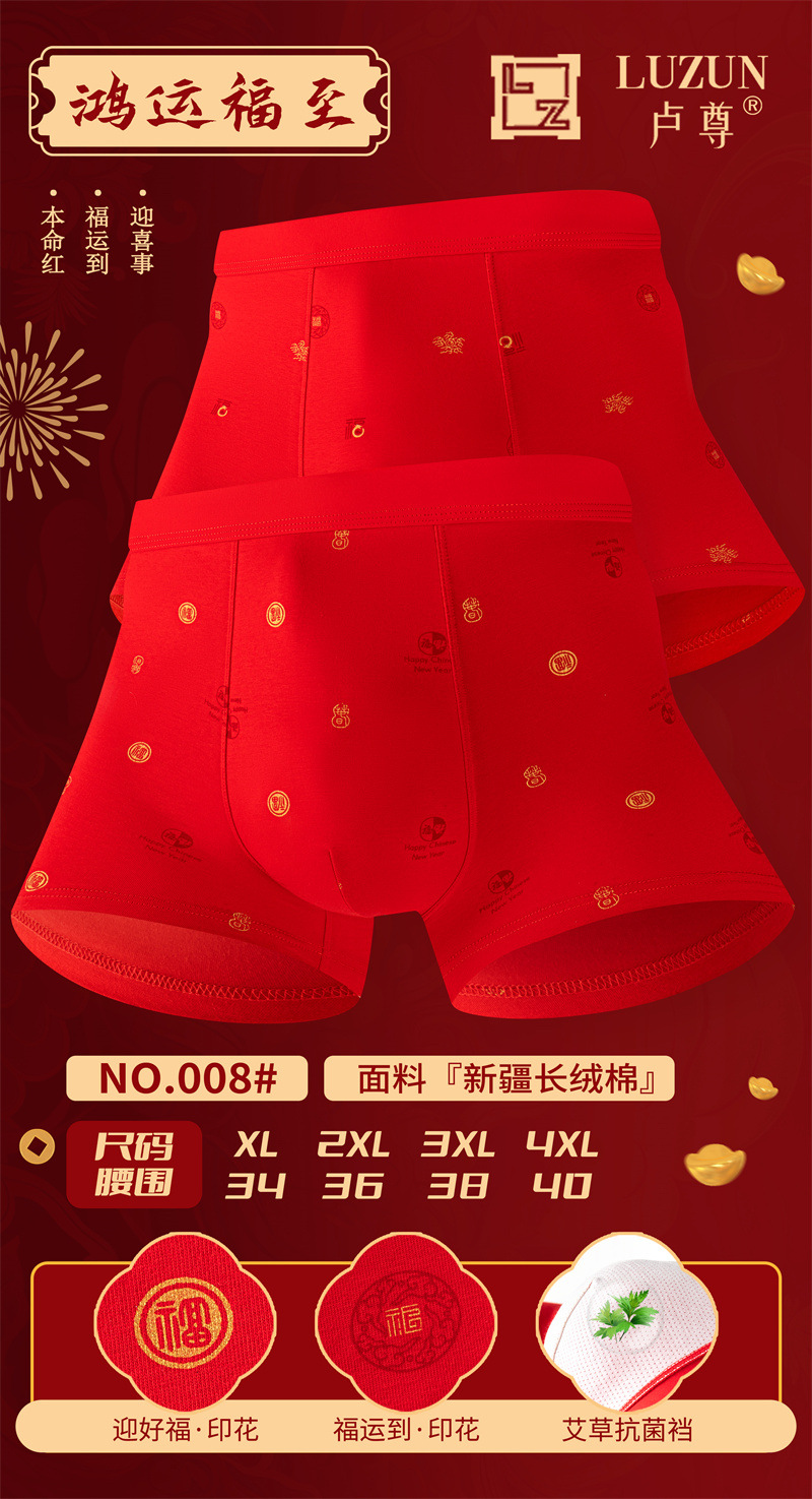 Lu Zun 008 남자 복서 50 신장 긴 스테이플 코튼 빅 레드 통기성 미드 웨이스트 4 코너 항균 속옷스토어 가기