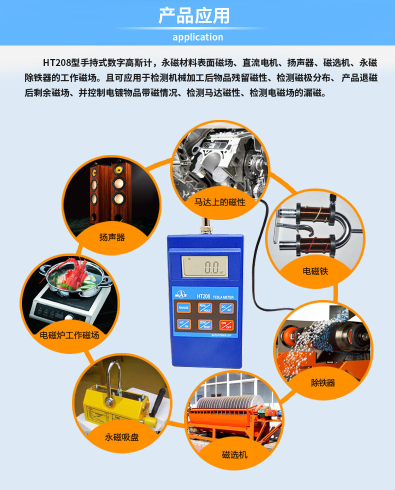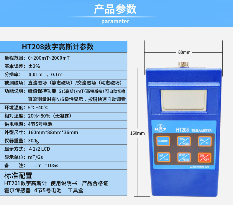 상하이 헝통 AC-DC 가우량계 HT208 고정밀 휴대용 디지털 테슬라바 미터 잔류 자기 미터 강한 자기 미터