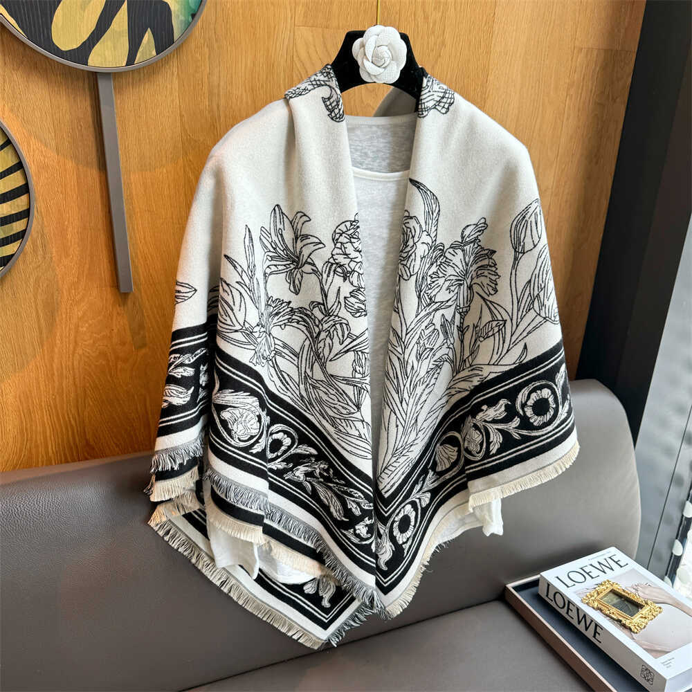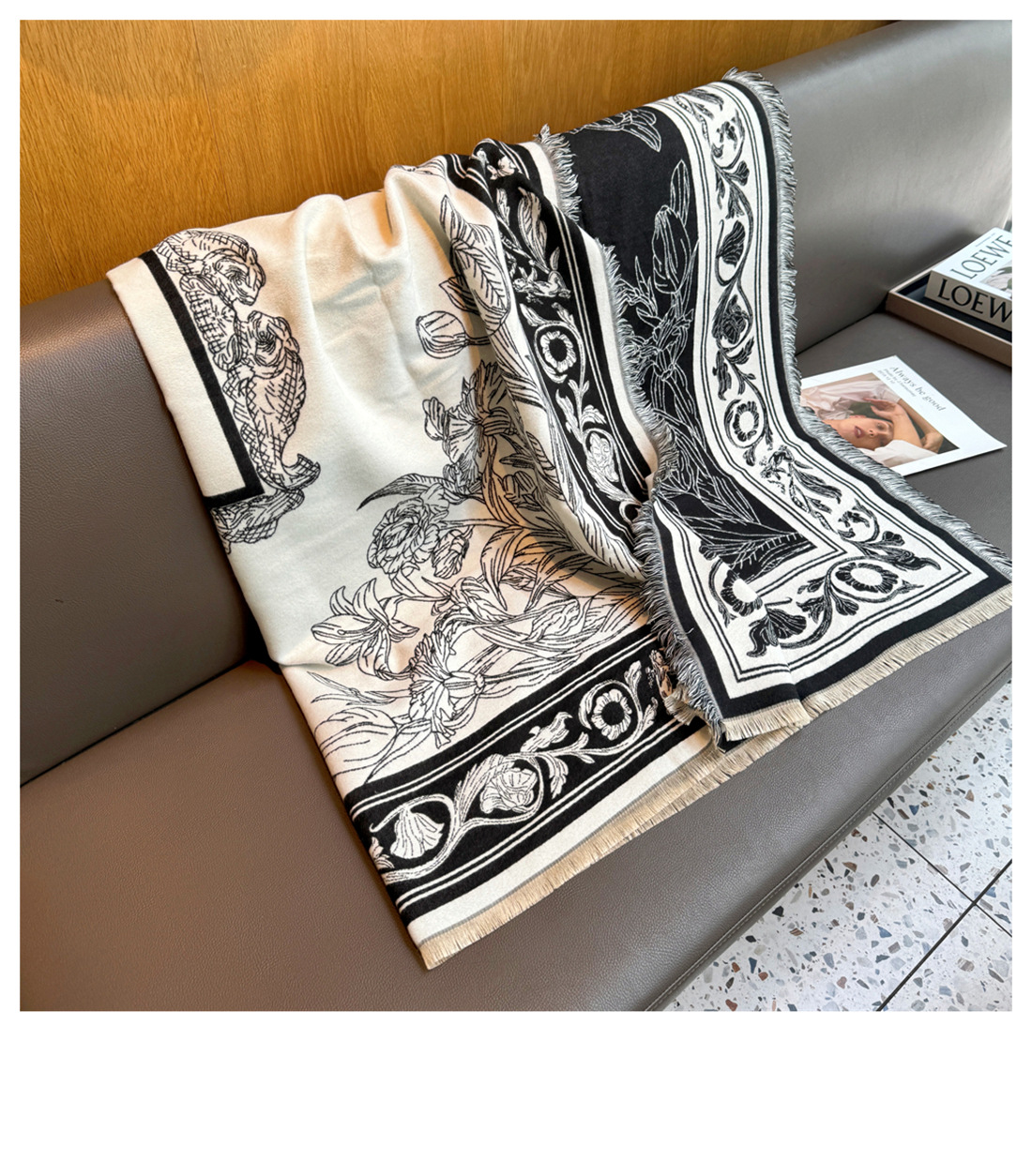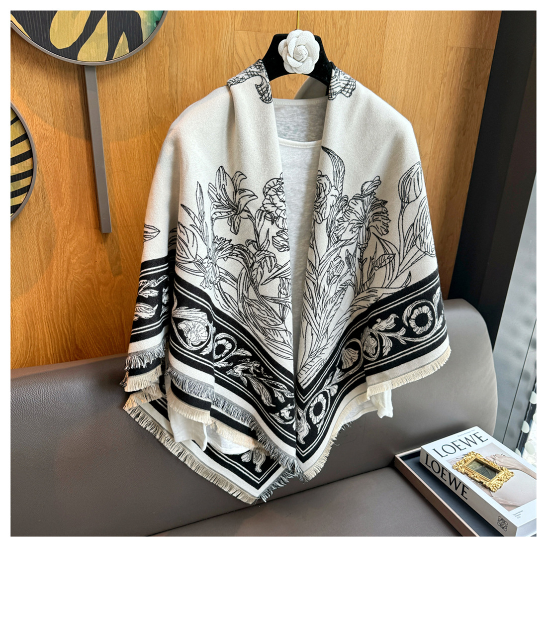 黑白双面可戴高级感大方巾女冬季新款加厚保暖披肩围脖仿羊绒围巾