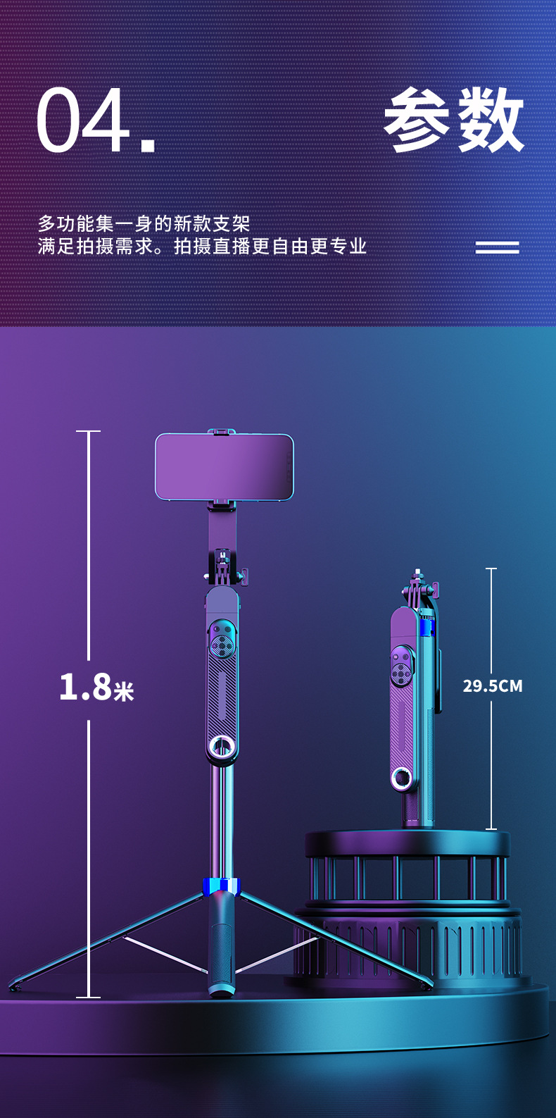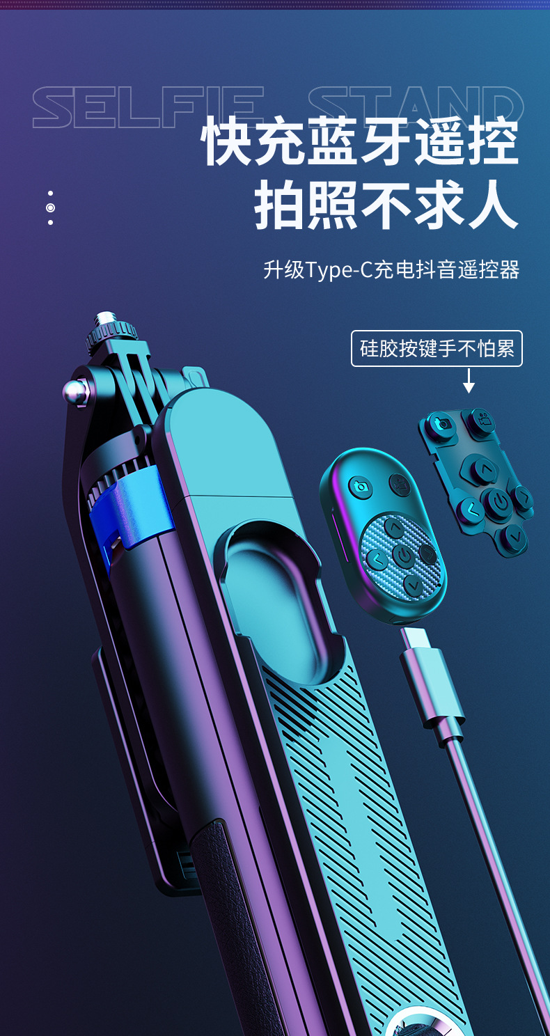 P515TK 키 4 피트 트레몰로 블루투스 셀카 스틱 유니버설 휴대 전화 라이브 플로어 스탠드 안정기를 엽니 다.