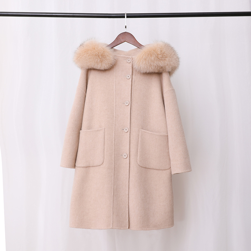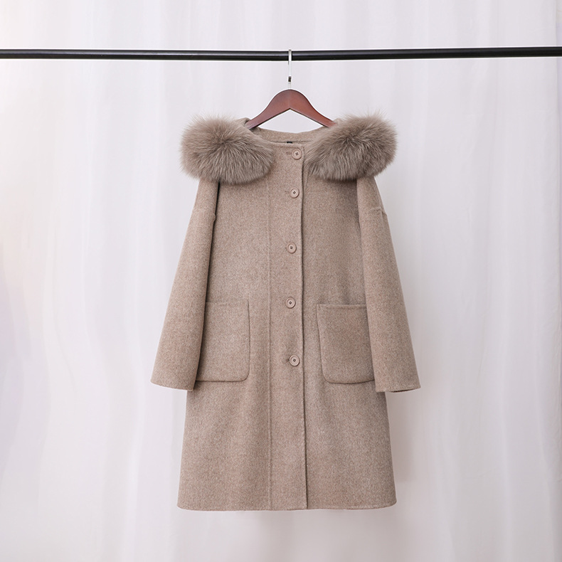 여아 양면 모직 코트 2025 신상 스타일리시 가을 겨울 중대형 어린이 모직 코트 여우털 칼라스토어 가기