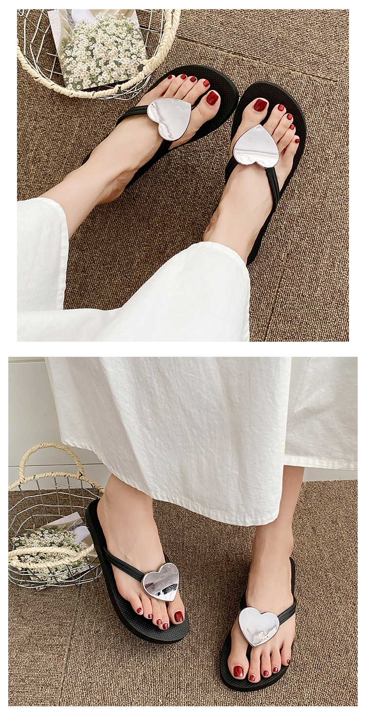 간단한 클래식 소녀의 심장 귀여운 플립 플롭 여성 외부 새로운 인터넷을 착용-유명한 Ins 비 슬립 유행 슬리퍼