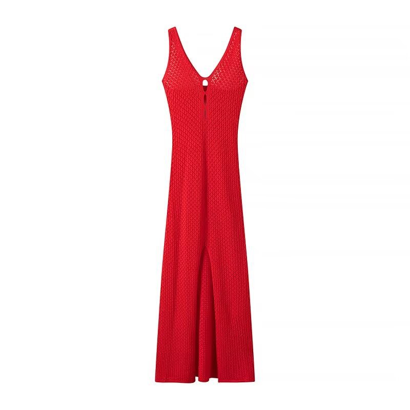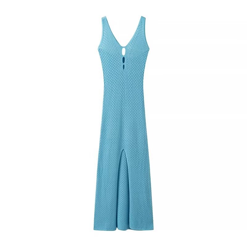 UC & ZA 국경 간 AliExpress 폭발 여성 2024 년 여름 섹시한 빈 해변 휴가 니트 원피스