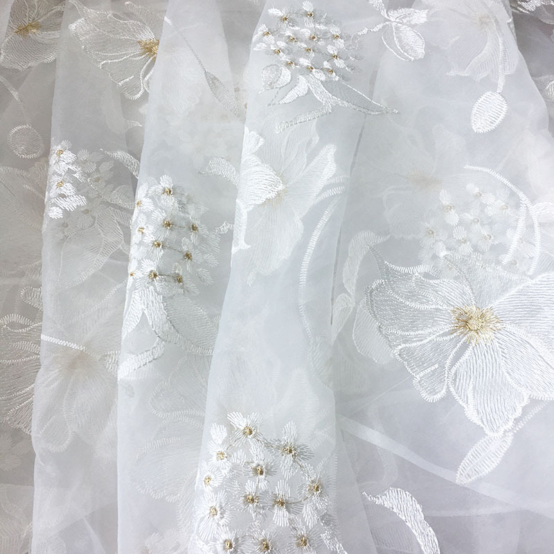 Guofeng 새로운 중국 스타일 Organza 큰 꽃 자수 선 스크린 원사 원단 소녀 여성 원피스 자수 원단