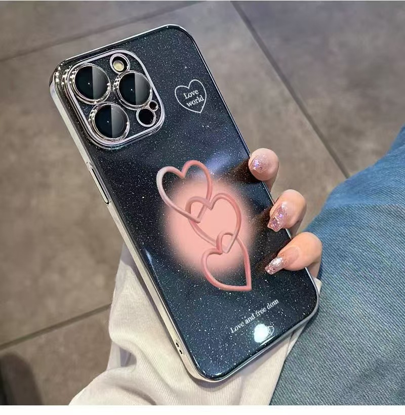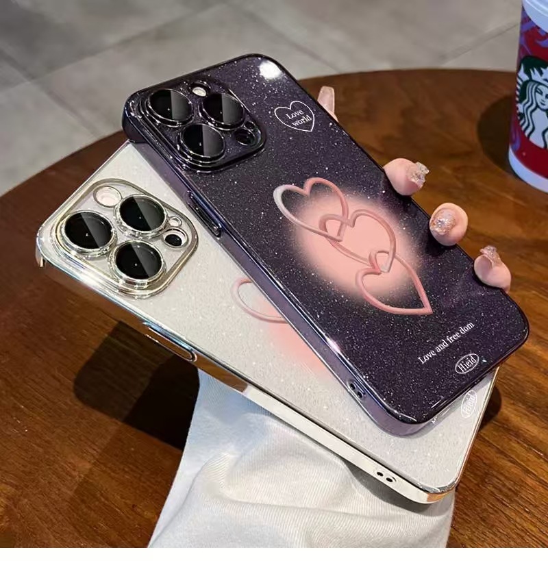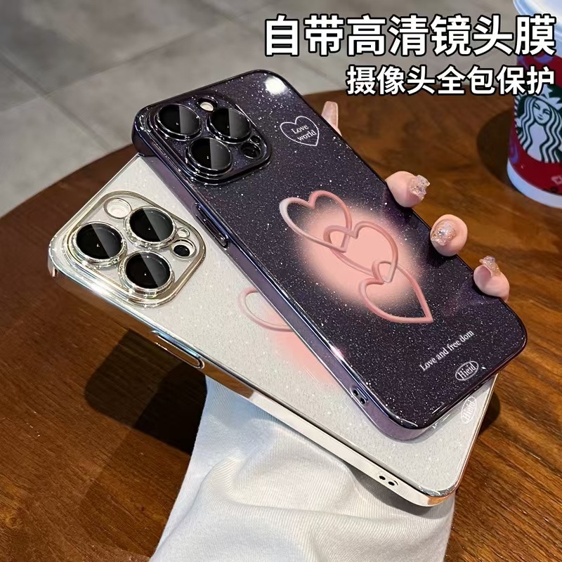 애플 16promax/15 플러스 안티 드롭 14pro 에 대한 사랑 문자열 전기 도금 반짝이 렌즈 필름 보호스토어 가기
