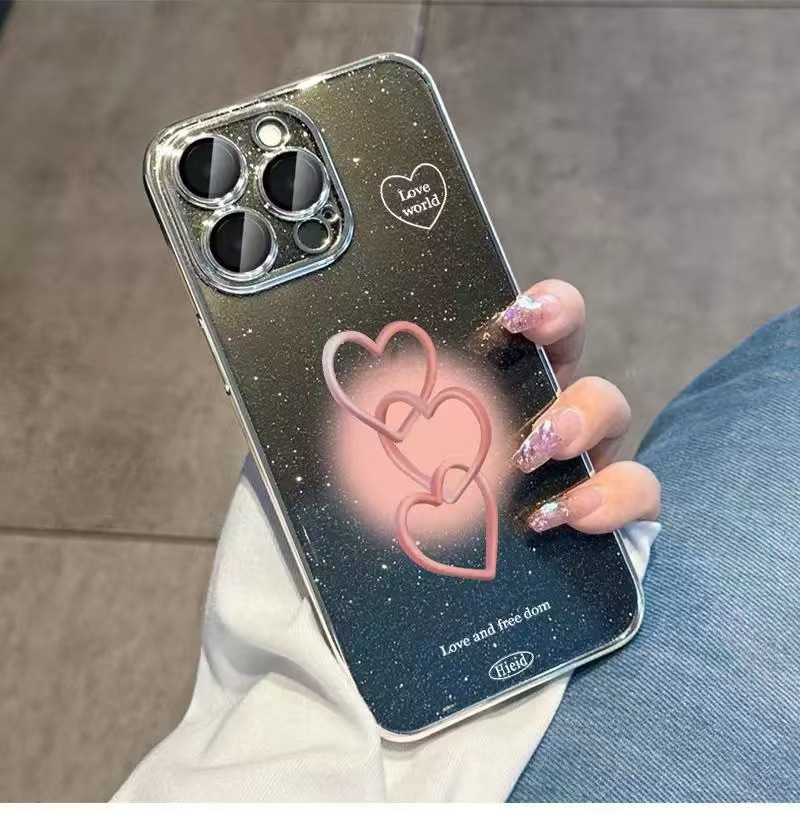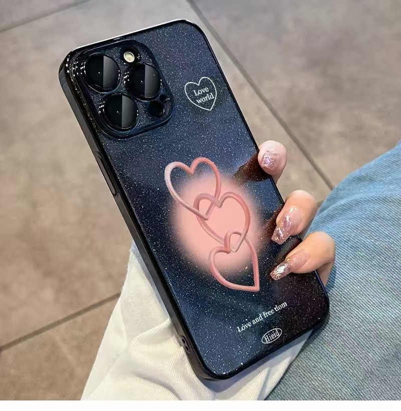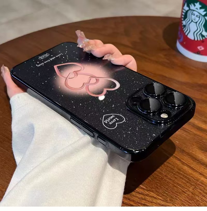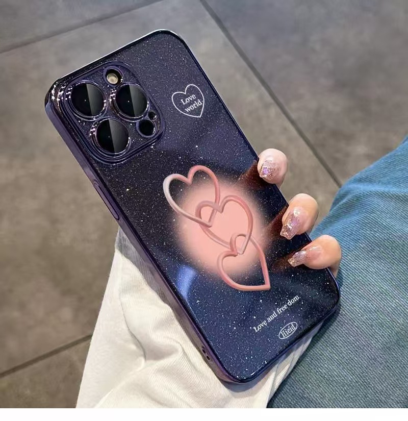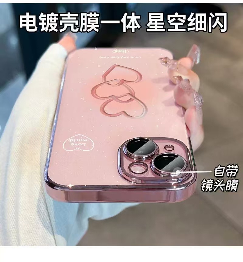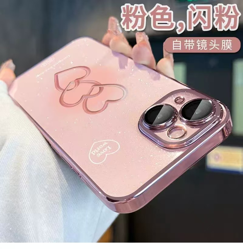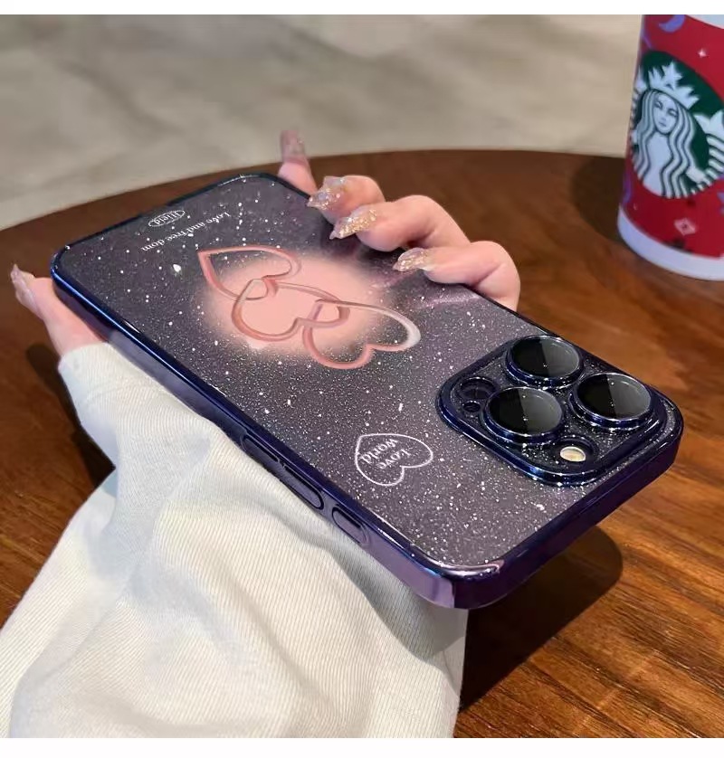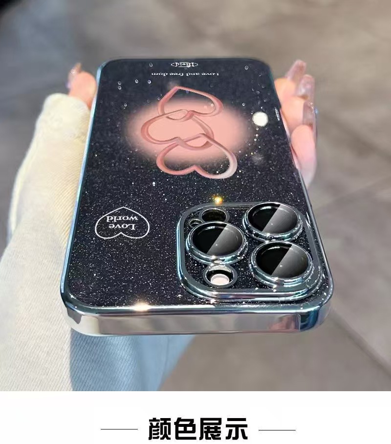 애플 16promax/15 플러스 안티 드롭 14pro 에 대한 사랑 문자열 전기 도금 반짝이 렌즈 필름 보호