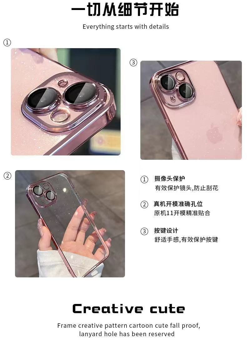 • [투명 핑크] 렌즈 필름 포함 - 전기 도금 글리터