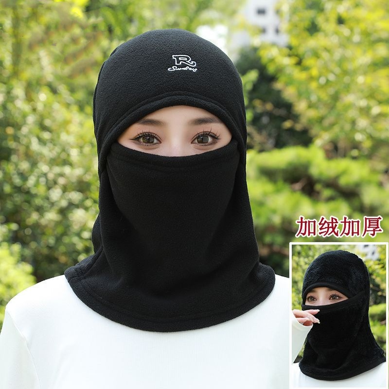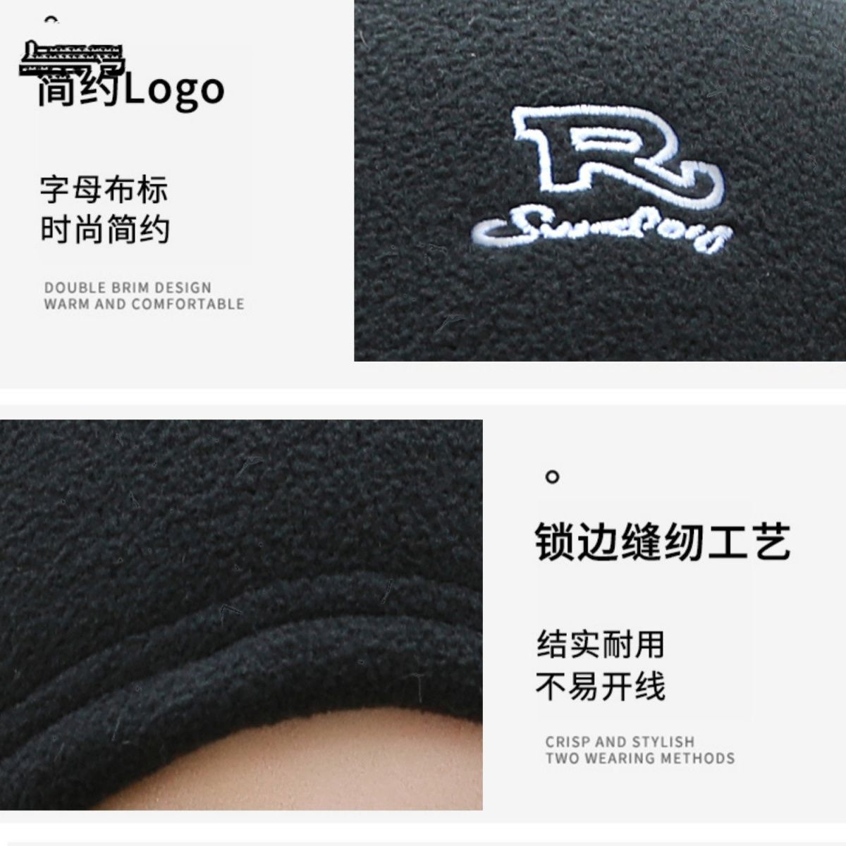 • 폴라 플리스 R 라벨 라이딩 풀오버 모자 - 블랙