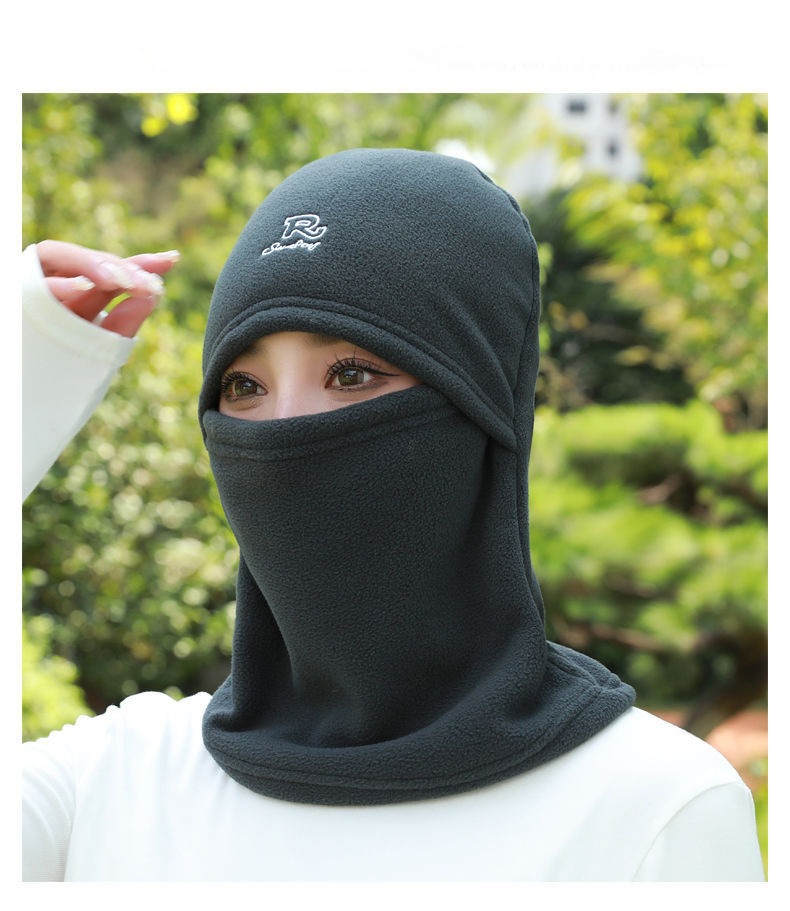 • 폴라 플리스 R 라벨 라이딩 풀오버 모자 - 다크 그레이