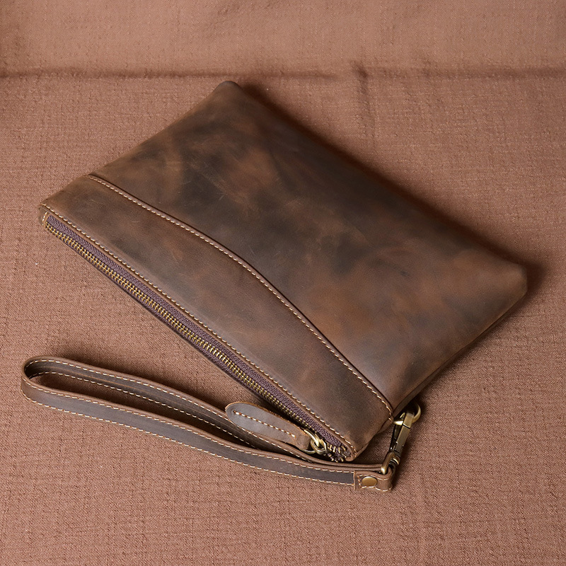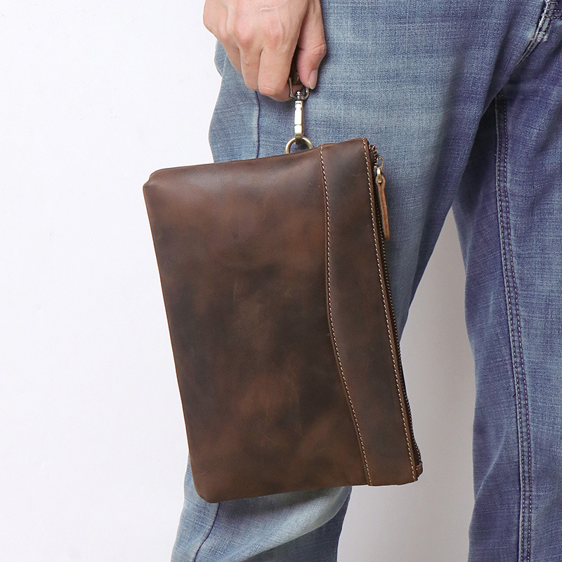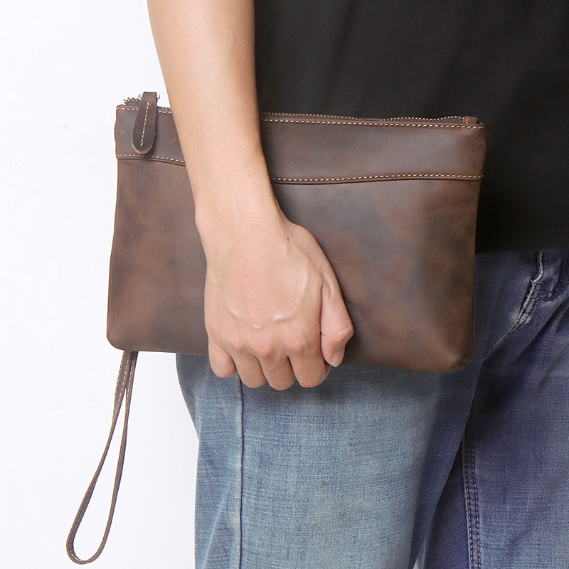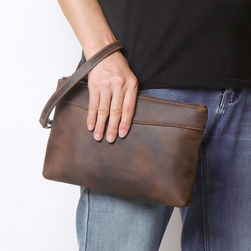 남성용 클러치 백 레트로 미친 말 가죽 클러치 백 헤드 레이어 Cowhide 대용량 지갑 가방 국경 간 공급스토어 가기