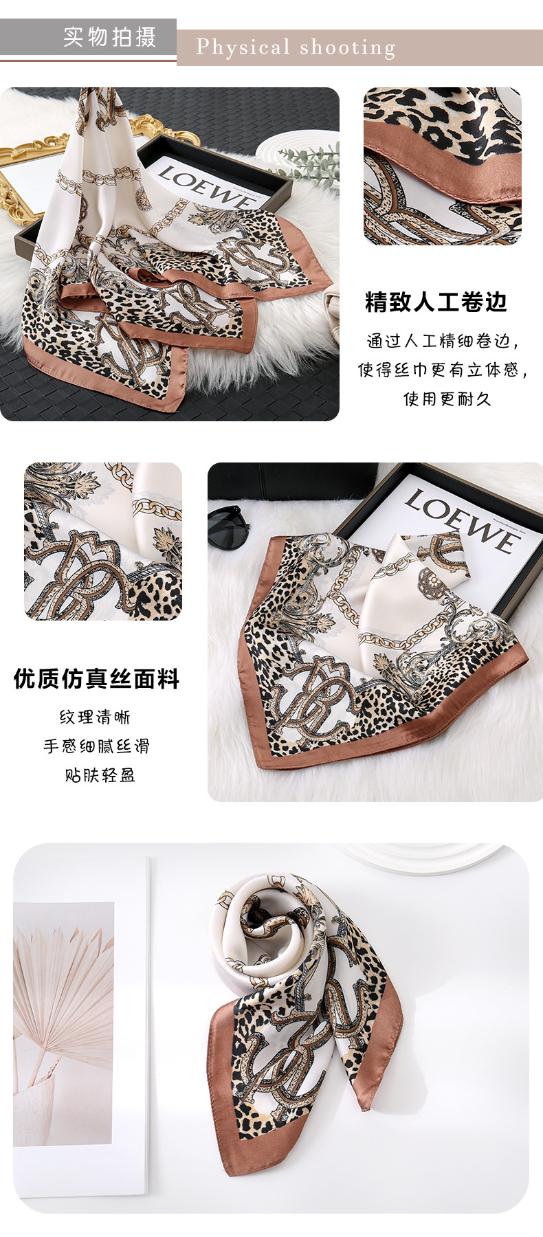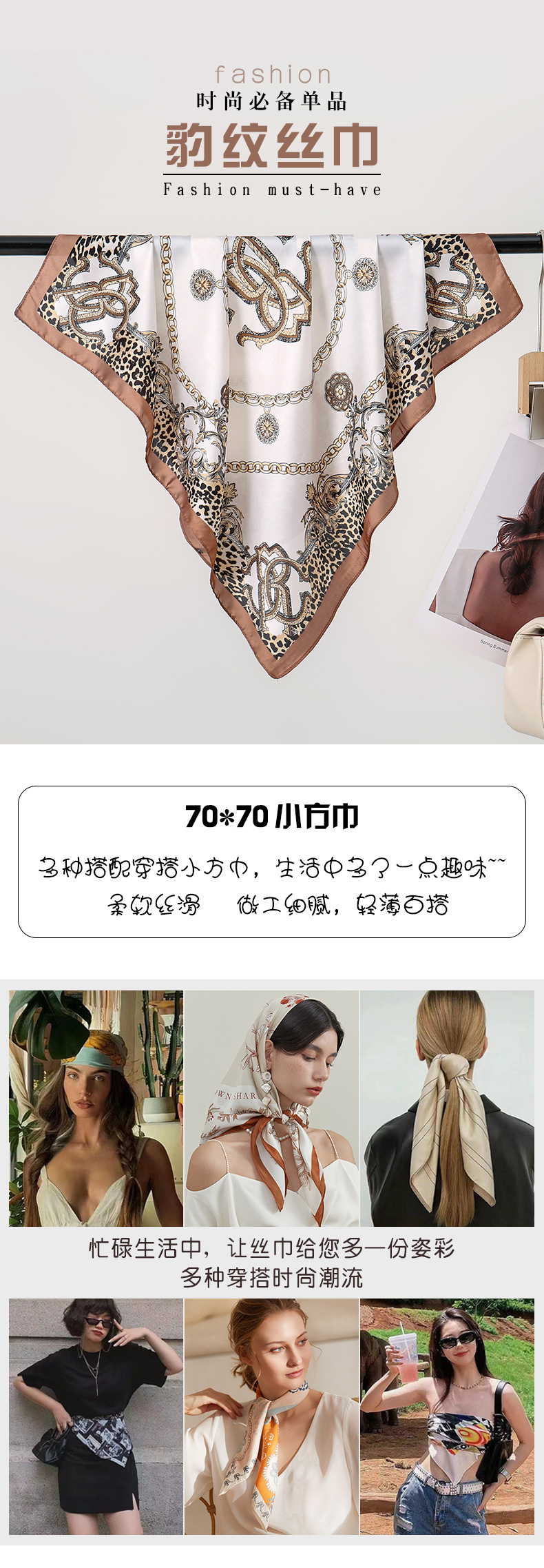 가벼운 고급 고급 레오파드 무늬 체인 요소 인쇄 70 모방 실크 스카프 봄과 가을 패션 정렬 목도리 스카프스토어 가기