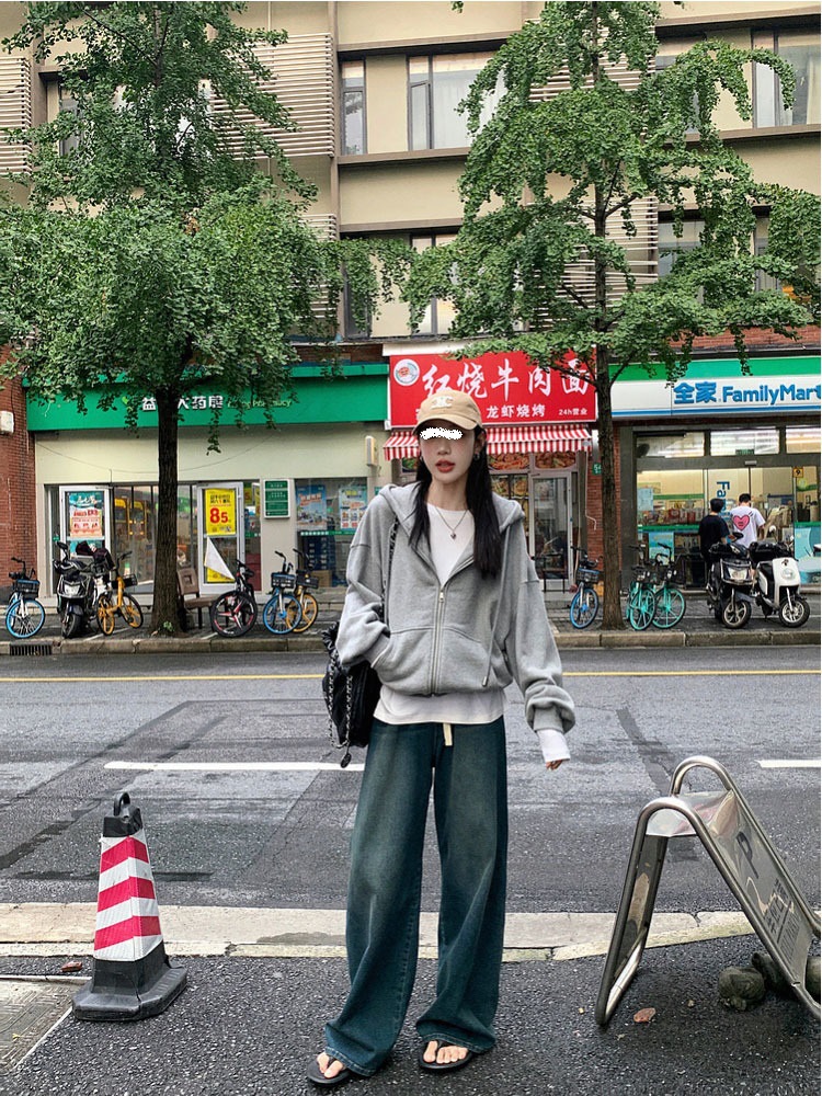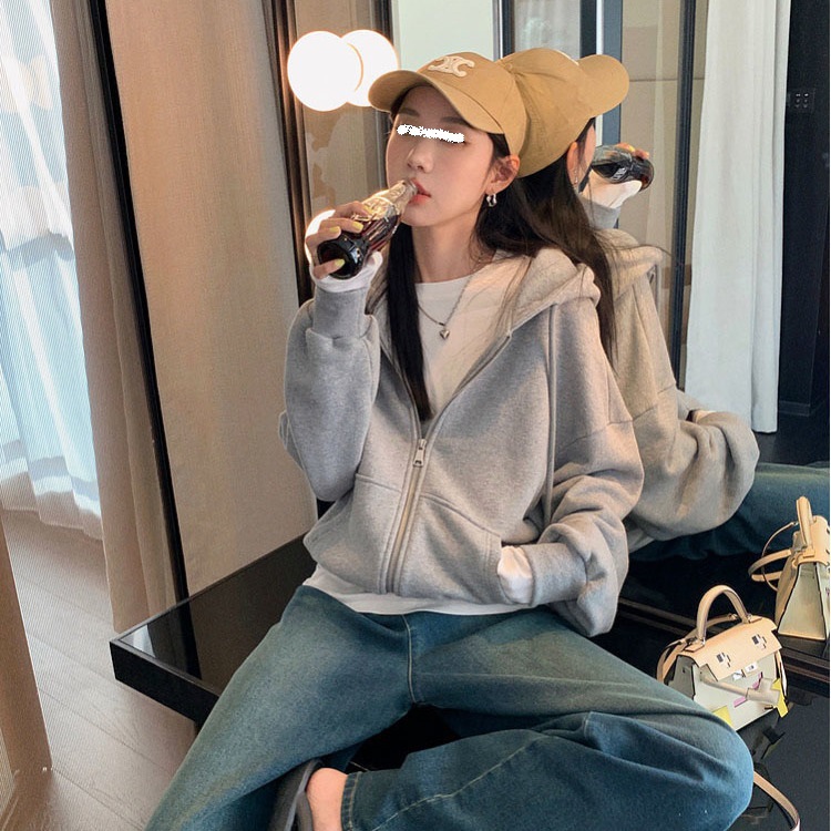 퓨어 코튼 후드 재킷 여성의 느슨한 단색 긴 소매 재킷 여성의 한국 스타일 디자인 센스 캐주얼 후드 스웨트스토어 가기