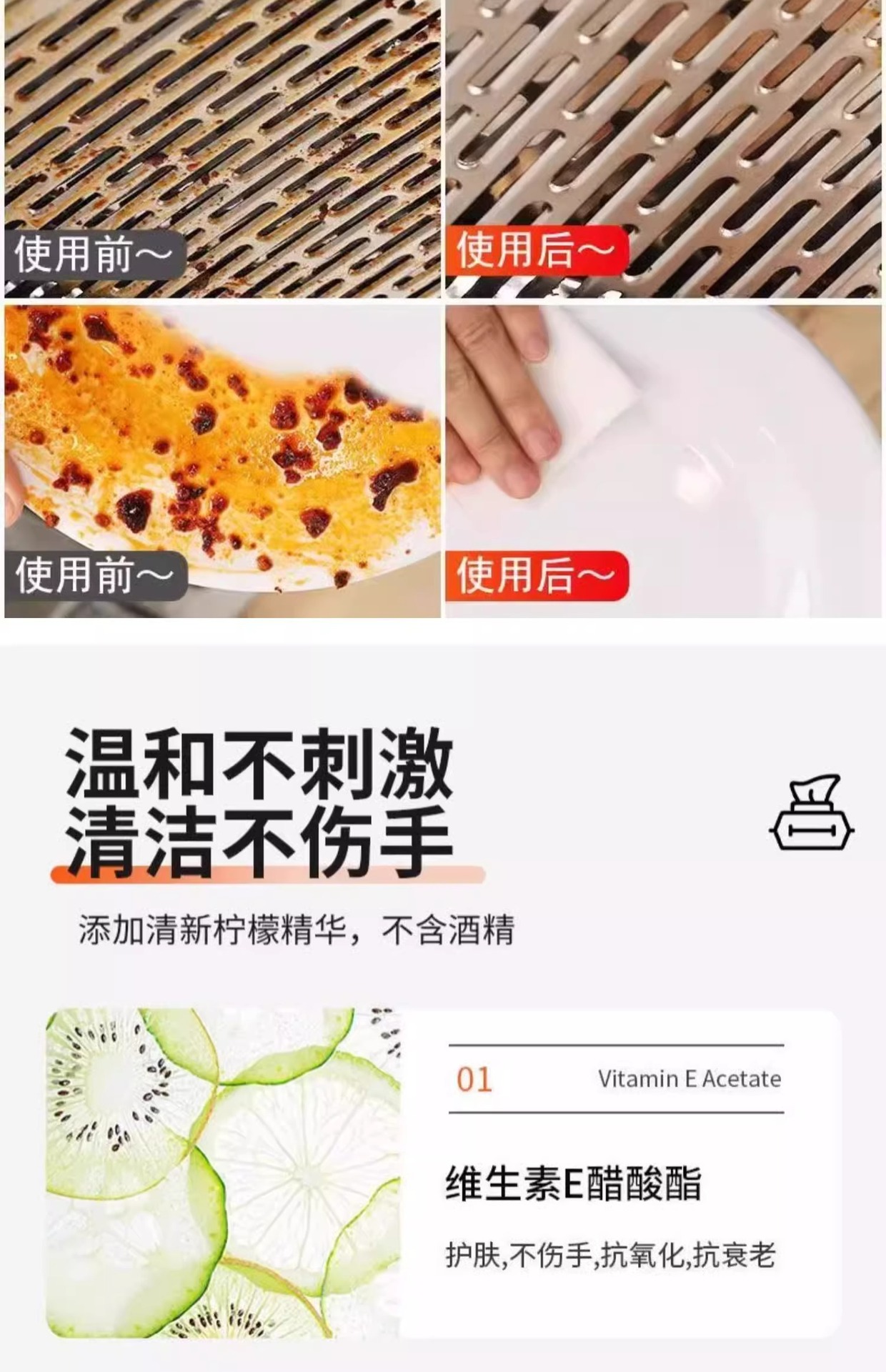 주방 청소 젖은 젖은 물티슈 레인지 후드 중유 얼룩 제거 청소 닦아 기름 기름 제거 및 얼룩 제거 젖은 조직을 위한 특별한 두부