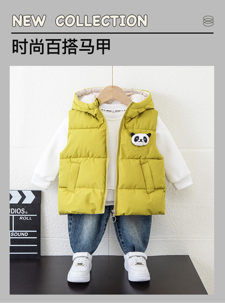 어린이 착용 소년 가을 겨울 조끼 2024 새로운 가을 착용 만화 후드 말벌 소년의 가을과 겨울 두꺼운 포니 클립스토어 가기