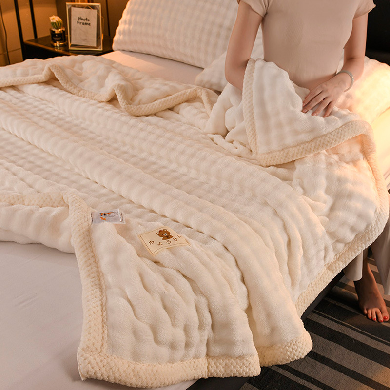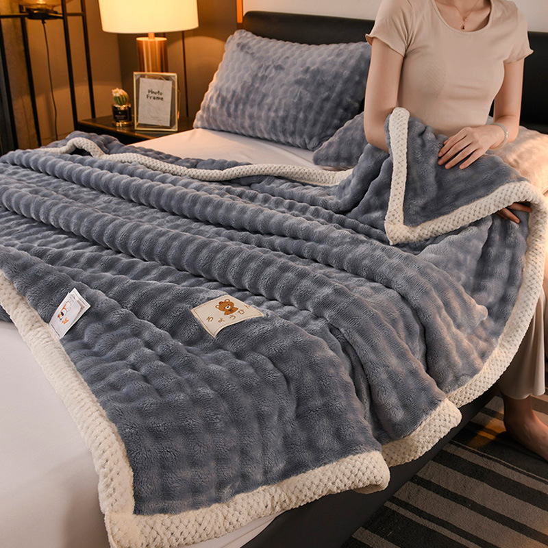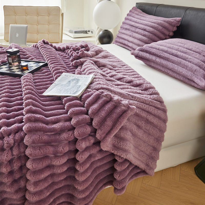 다기능 토끼 봉제 커버 담요 빛 럭셔리 모방 토끼 벨벳 버블 담요 더블 레이어 담요 냅스 두꺼운 소파 커버 담요스토어 가기