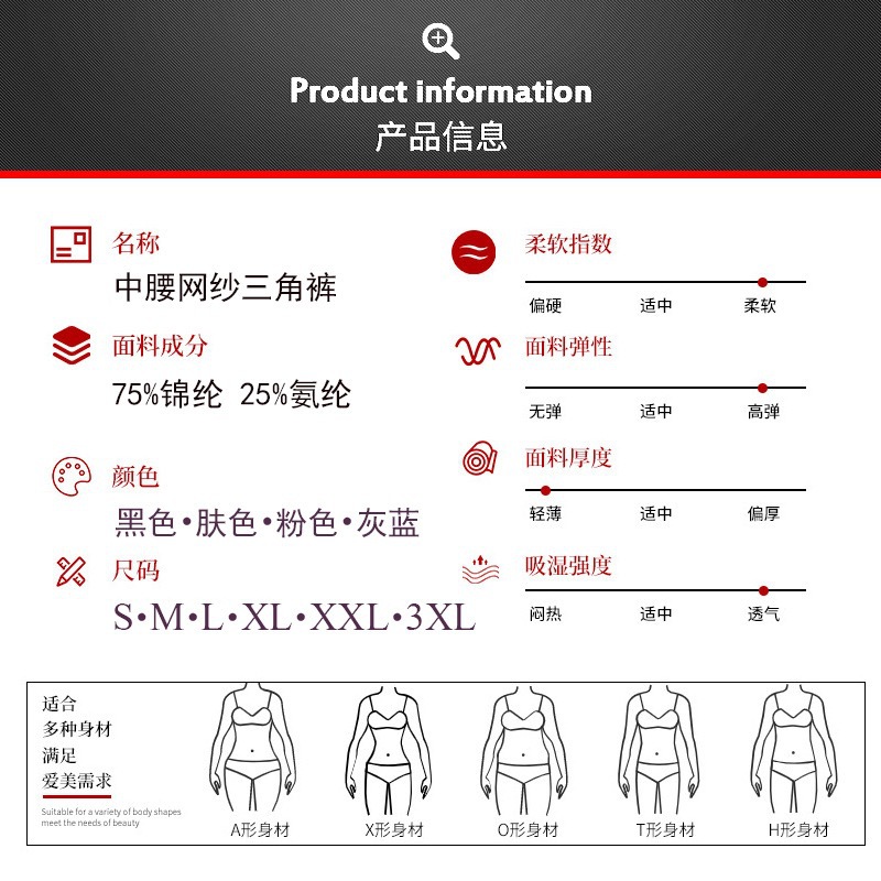 국경을 넘나 드는 유럽과 미국은 섹시한 메쉬 스티칭 아이스 실크 속옷 여성의 중간 허리 튜닉 복부 바지 엉덩이 브리프를 플러스 사이즈