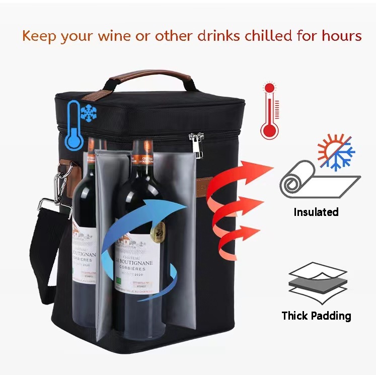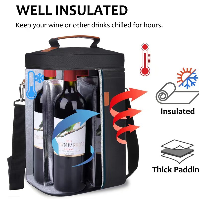 점심 가방 레드 와인 보온병 가방 4 병 와인 차가운 얼음 가방 야외 피크닉 가방 피크닉 가방