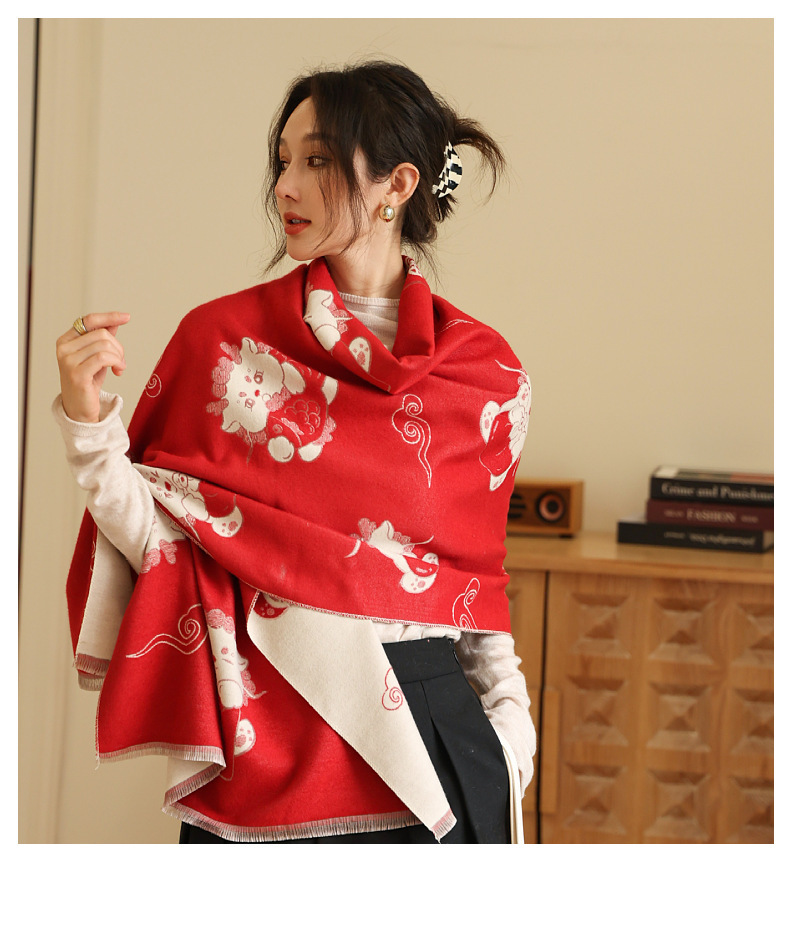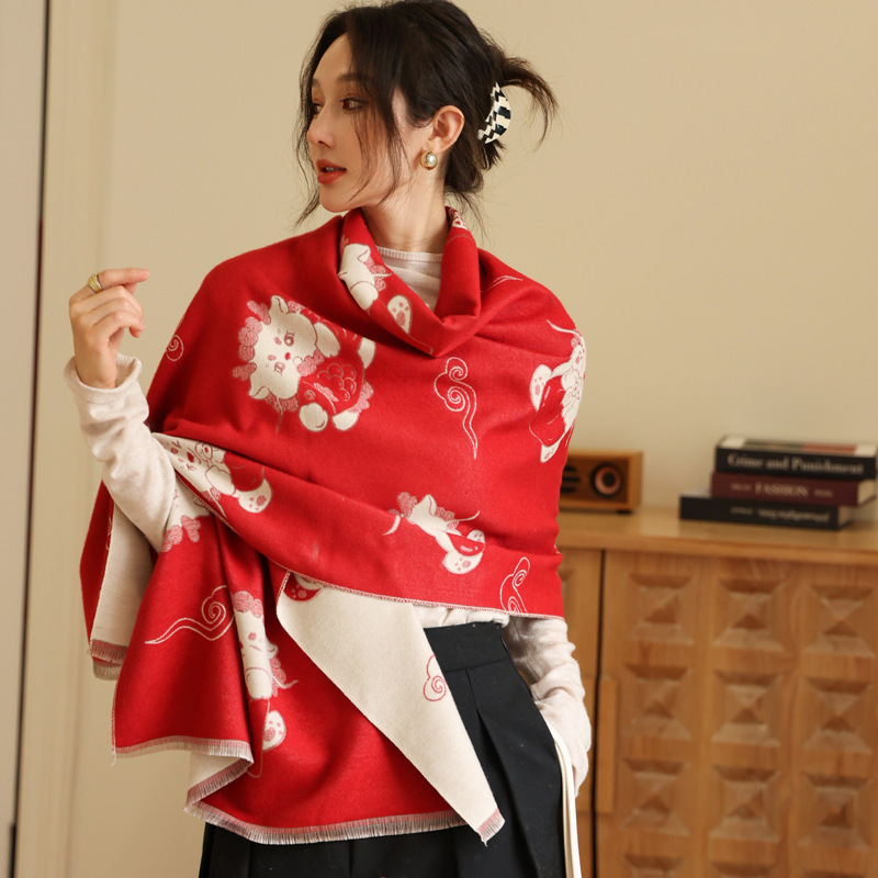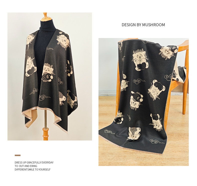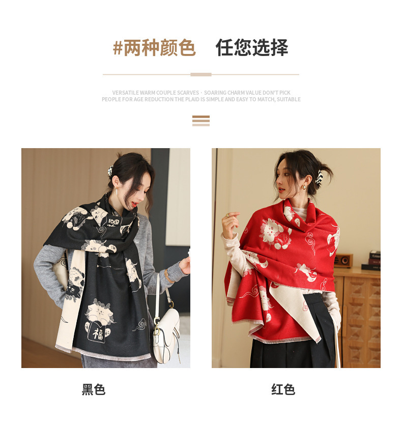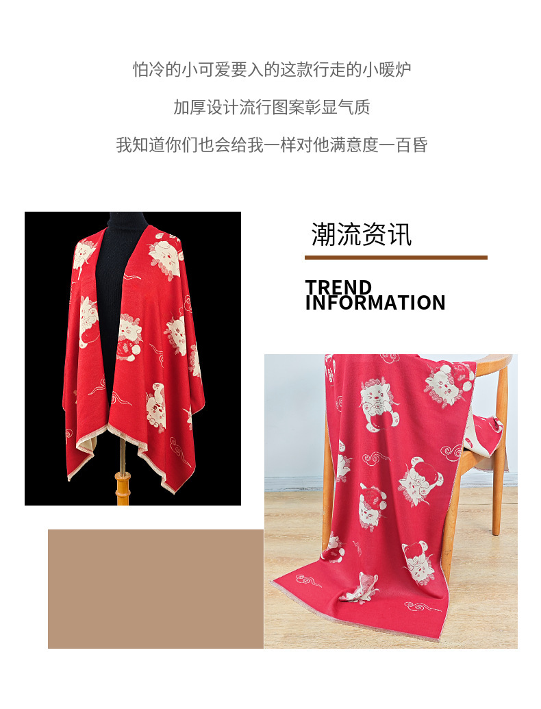 可爱猫咪重磅双面围巾女秋冬季百搭加厚保暖仿羊绒高级感披肩围脖