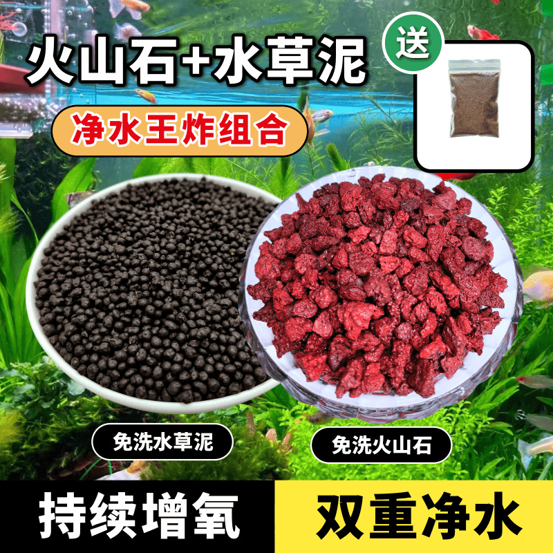 • [정제 및 정제 스크린] 1.0kg 화산석 + 1.0kg 수생 식물 진흙 + 미니 잎 씨앗 1팩