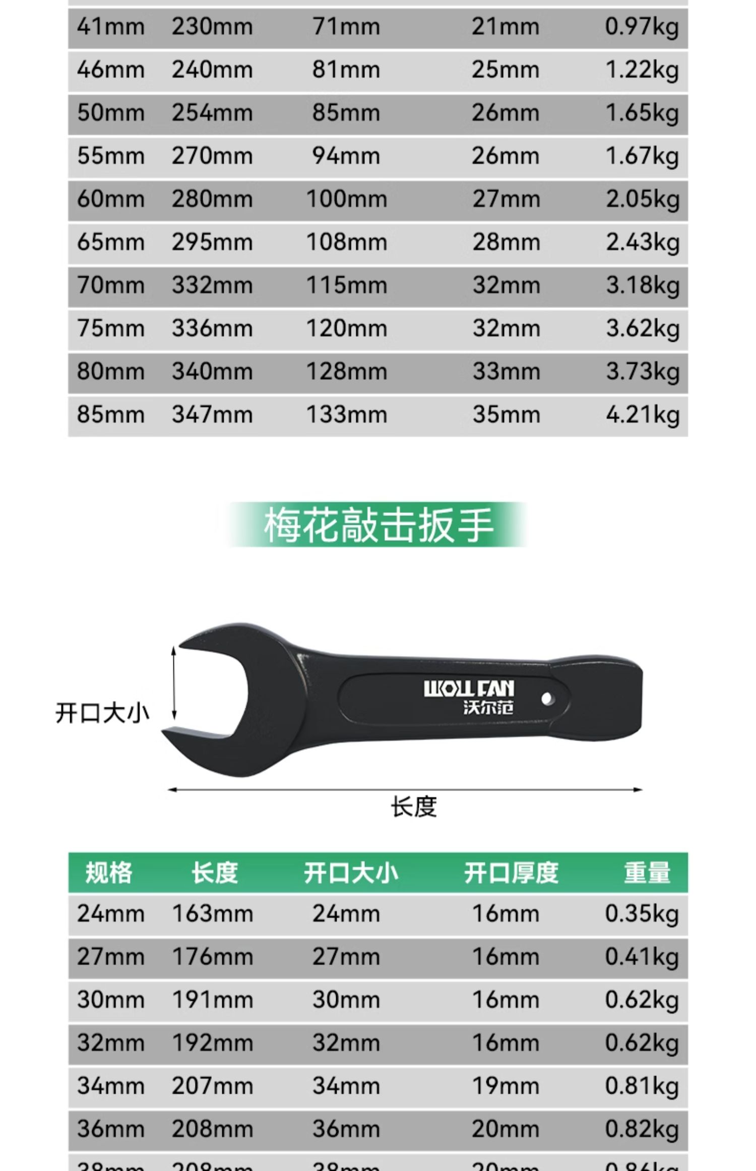 • 헤비 듀티 노크 싱글 오픈 엔드 렌치 80mm