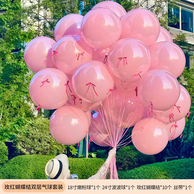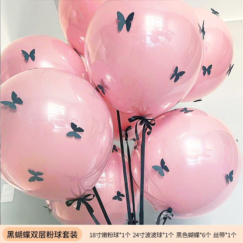 • 【1 세트】 보보볼 24inch 개 + 텐더 핑크 볼 18inch 개 + 검은 나비 6 개 + 리본