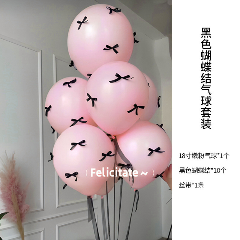 • 【1 세트】 부드러운 핑크 공 18inch 개 + 검은 나비 10 개 + 리본