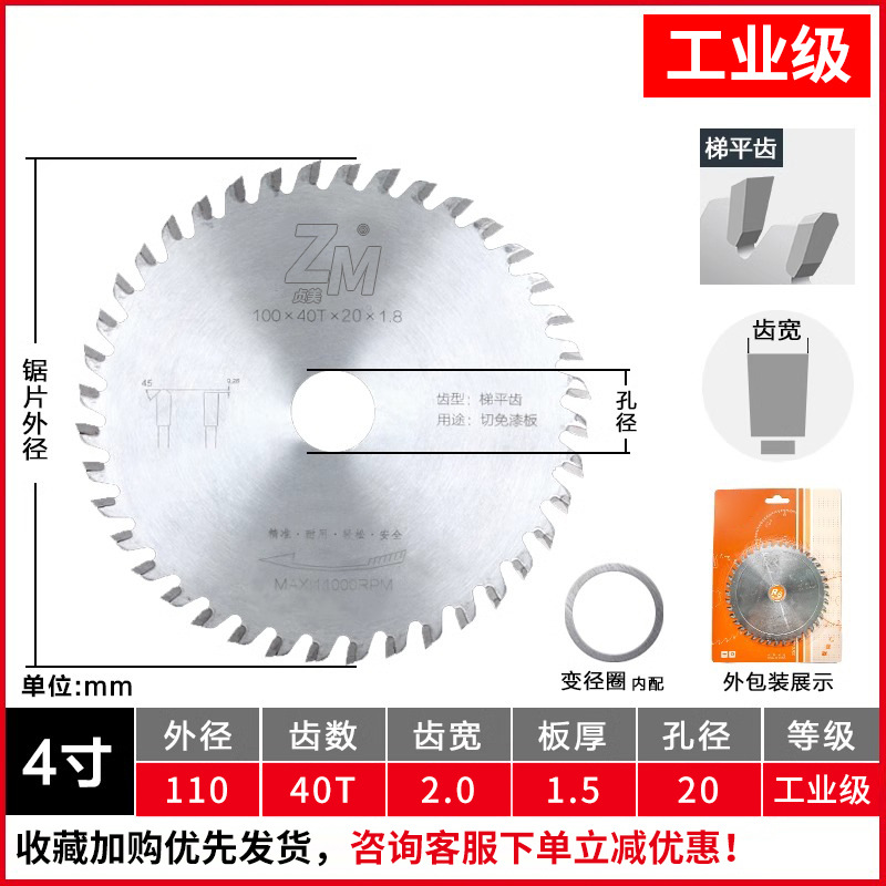 • 4인치 110x40 치아 x20 구멍(전문가 등급)