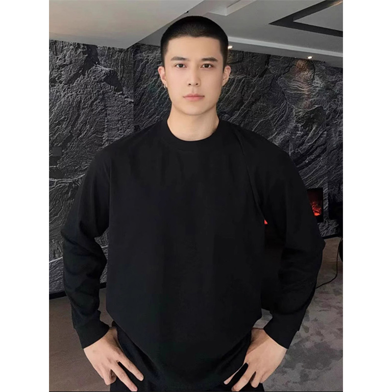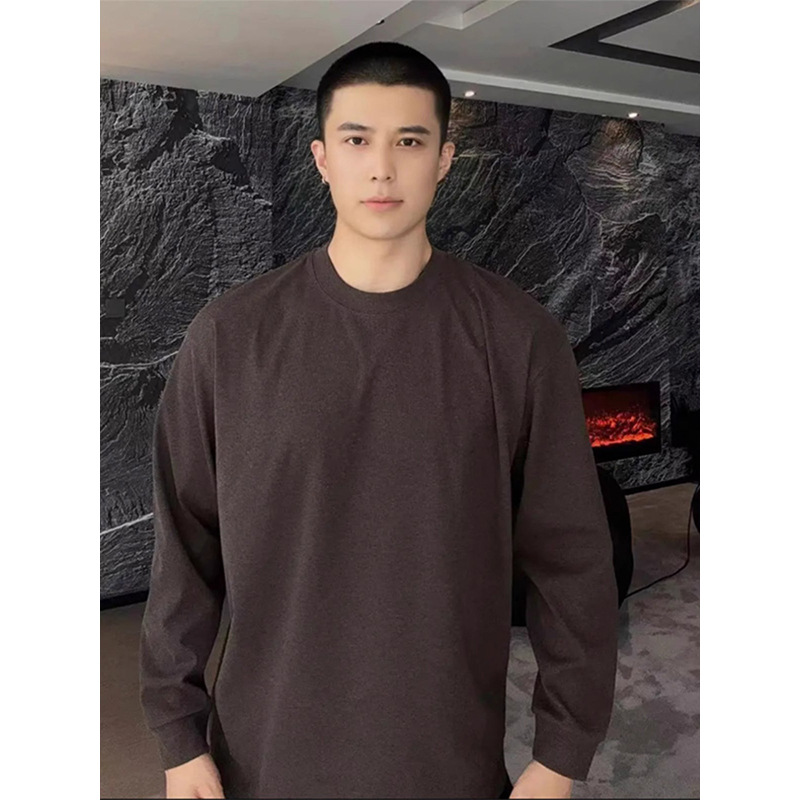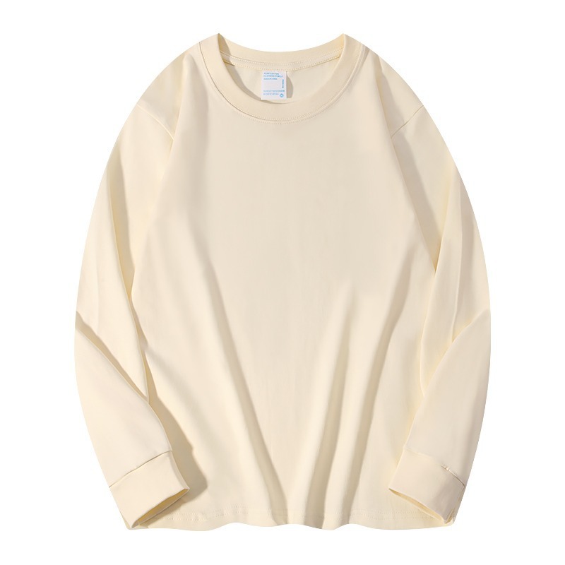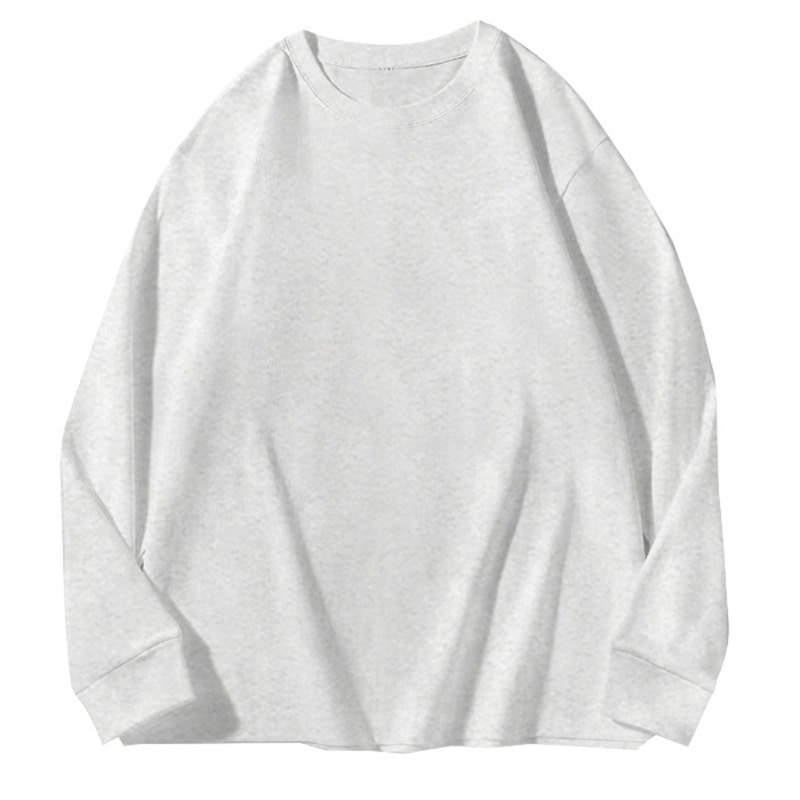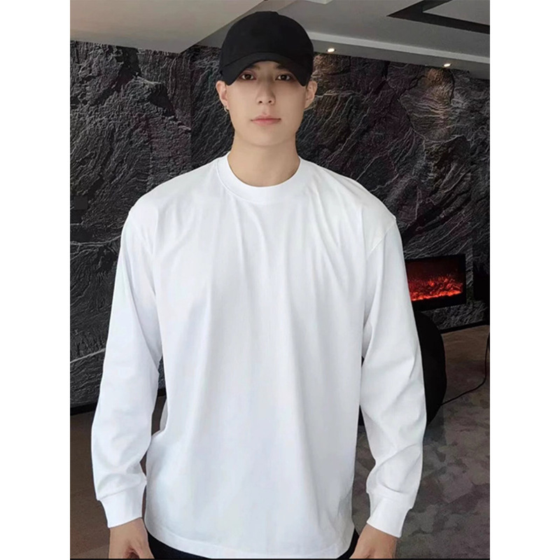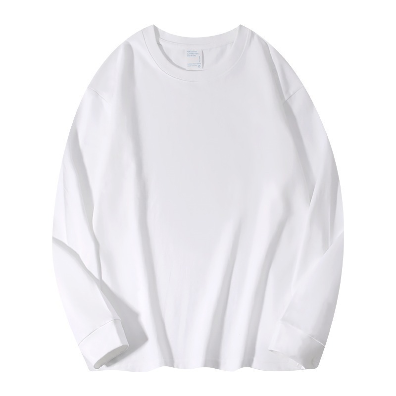 무거운 260G 조수 브랜드 순수한면 흰색 단색 느슨한 승무원 목 바닥 셔츠 긴팔 티셔츠 남성복 흰색 T스토어 가기