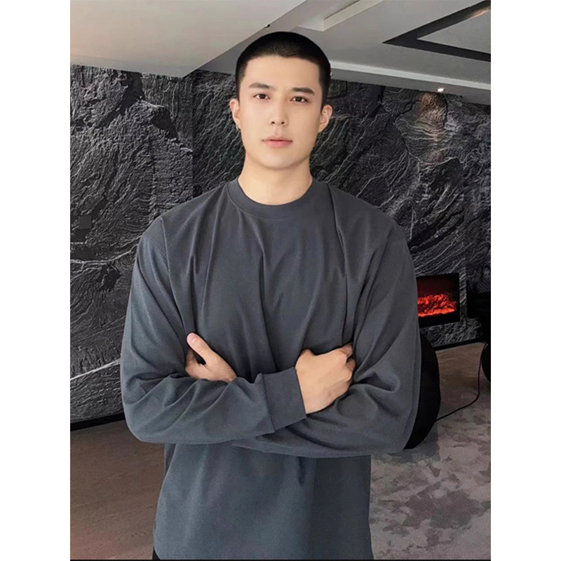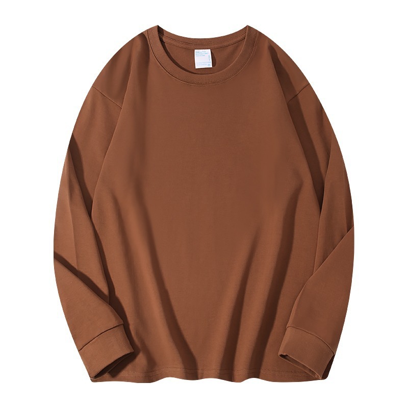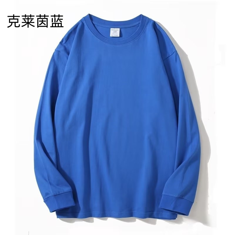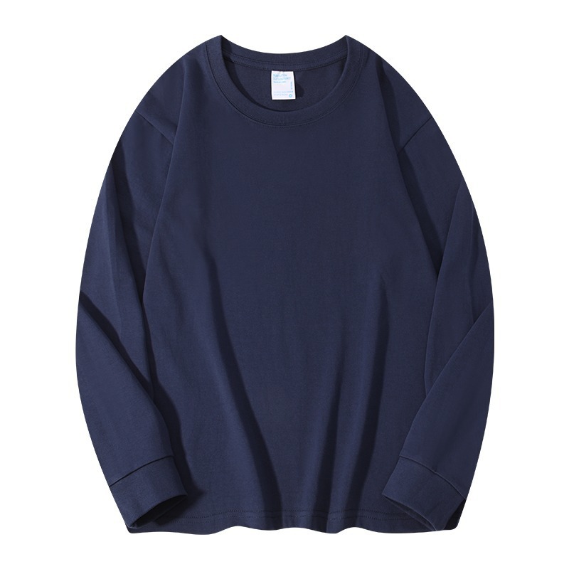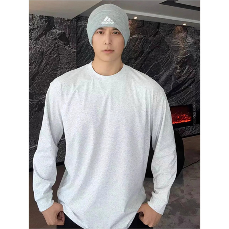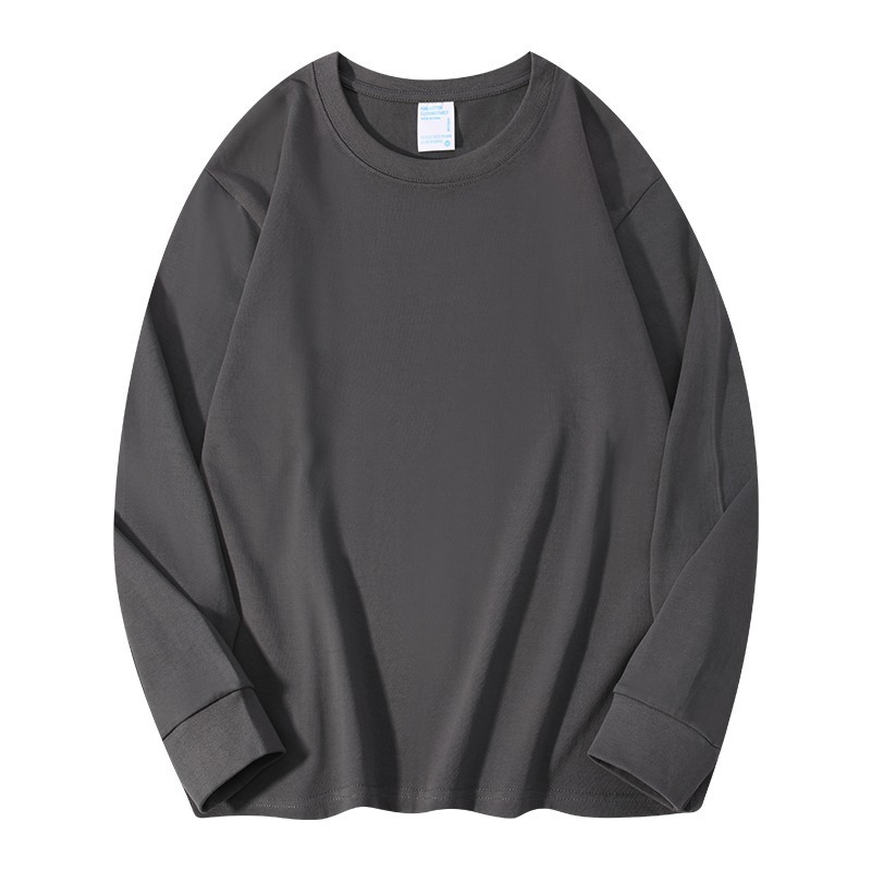 무거운 260G 조수 브랜드 순수한면 흰색 단색 느슨한 승무원 목 바닥 셔츠 긴팔 티셔츠 남성복 흰색 T스토어 가기